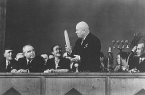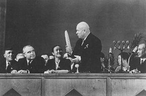 During World War II, Baltermants covered major battles (including the one in Stalingrad) for Izvestia and for the Red Army newspaper Na Razgrom Vraga. He fought and photographed in Ukraine, Poland, and Germany, reaching Berlin in 1945. He was wounded twice. Many of his most famous images (like Attack, Grief, On the Roads of War) were published only after the war (in the 1960s). Nevertheless, Baltermants emerged from the war with the reputation as one of the brilliant young war photographers. He started working for Ogonyok, popular illustrated magazine, and through his work the Baltermants name became quite well known. He traveled across the Soviet Union as well as abroad. He photographed Mao Tsetung during Khrushchev’s visit to China and Fidel Castro when he traveled to Cuba (and the United States) with Brezhnev. During the course of his career, Baltermants photographed every Soviet leader from Stalin to Gorbachev.