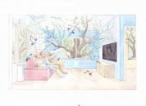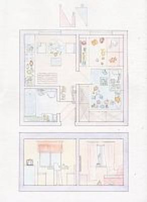 A series of graphics and architectural drawings were created for the social sculpture "Odnushka" (One-room apartment). This work was implemented in 2019 as part of the project" On the District/NA RAjONE", initiated by the Austrian Cultural Forum.