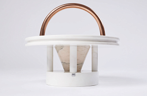 An Italian architect and designer known for his large oeuvre including furniture, jewelry, glass, lighting, and office design, Ettore Sottsass was also the founder in the early 1980s of the Memphis Group. Drawing inspiration from such movements as Art Deco and Pop Art, Memphis produced and exhibited furniture and objects that were vibrant in color and futuristic in design. Sottsass’ own work was known for its variety, oftentimes incorporating playfulness through ornamentation and color. His Olivetti typewriter (1969), one of his most celebrated designs, made of bright red-orange plastic, was a Pop phenom in both its functionality and innovative design. His architecture and design career spanned many decades and styles.