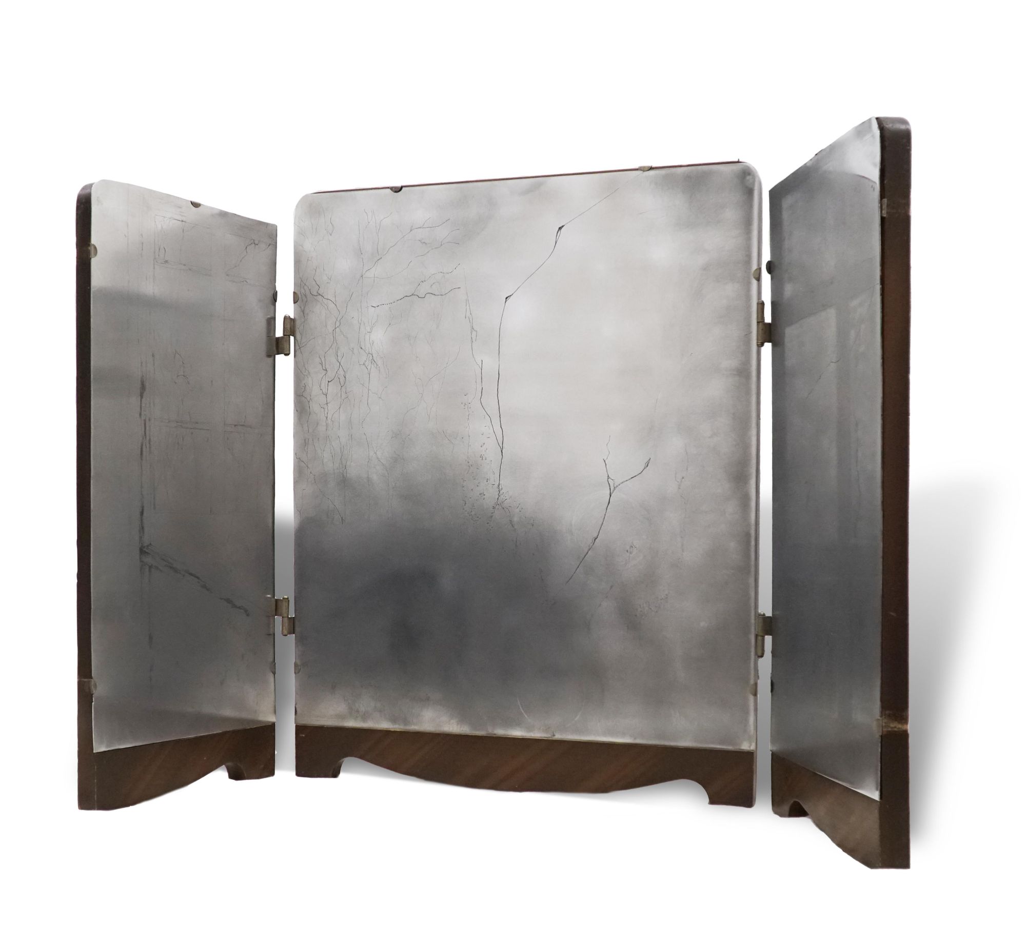 Материалы: Деревянная рама от зеркала, алюминий. Гравировка.