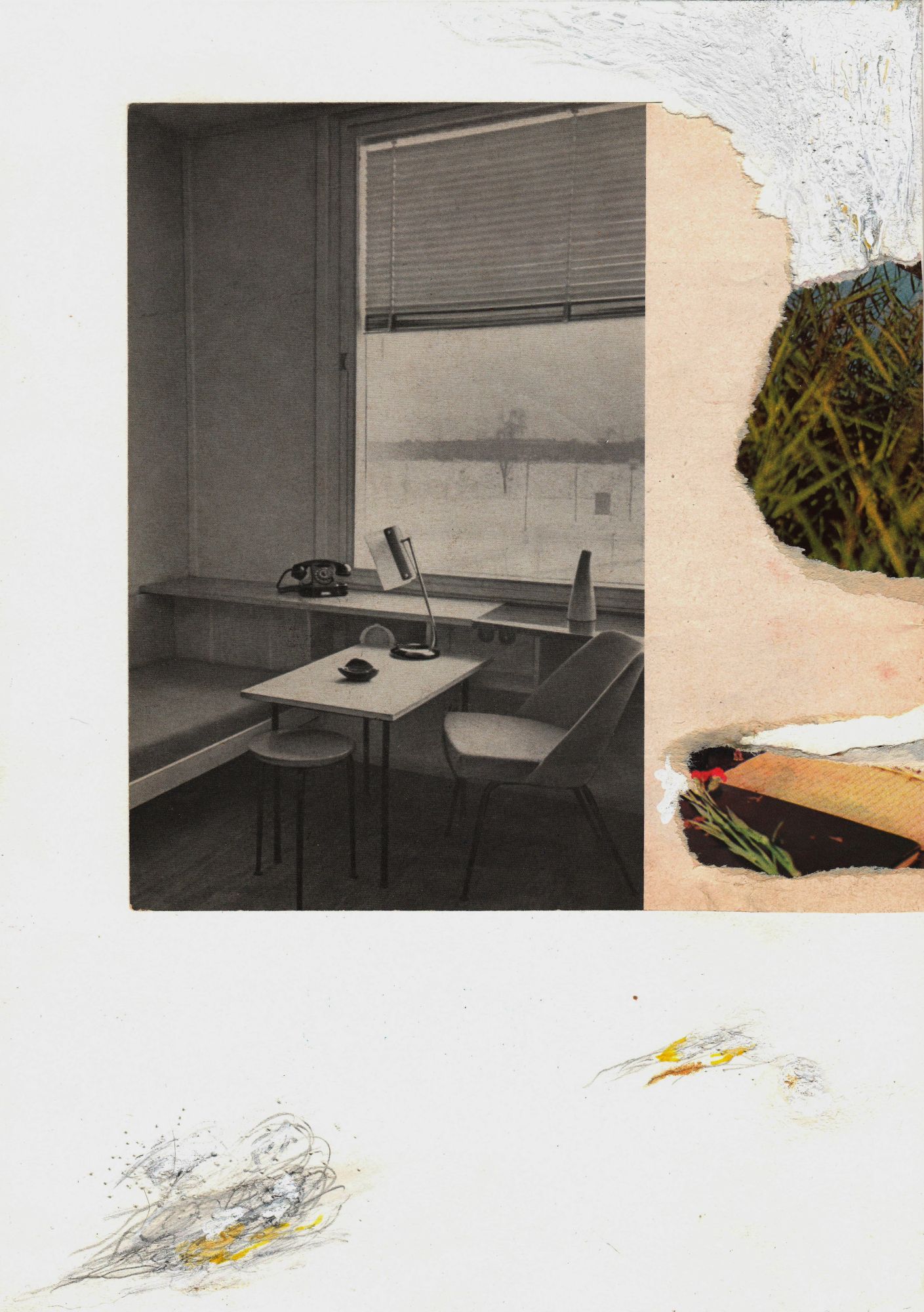 Trying to avoid political and social engagement, the artist’s attention is focused on, some kind of visual poetry and on formal rhymes, diary outgivings, where internal intimate spaces, verbally not specified serve as the form of the diary.