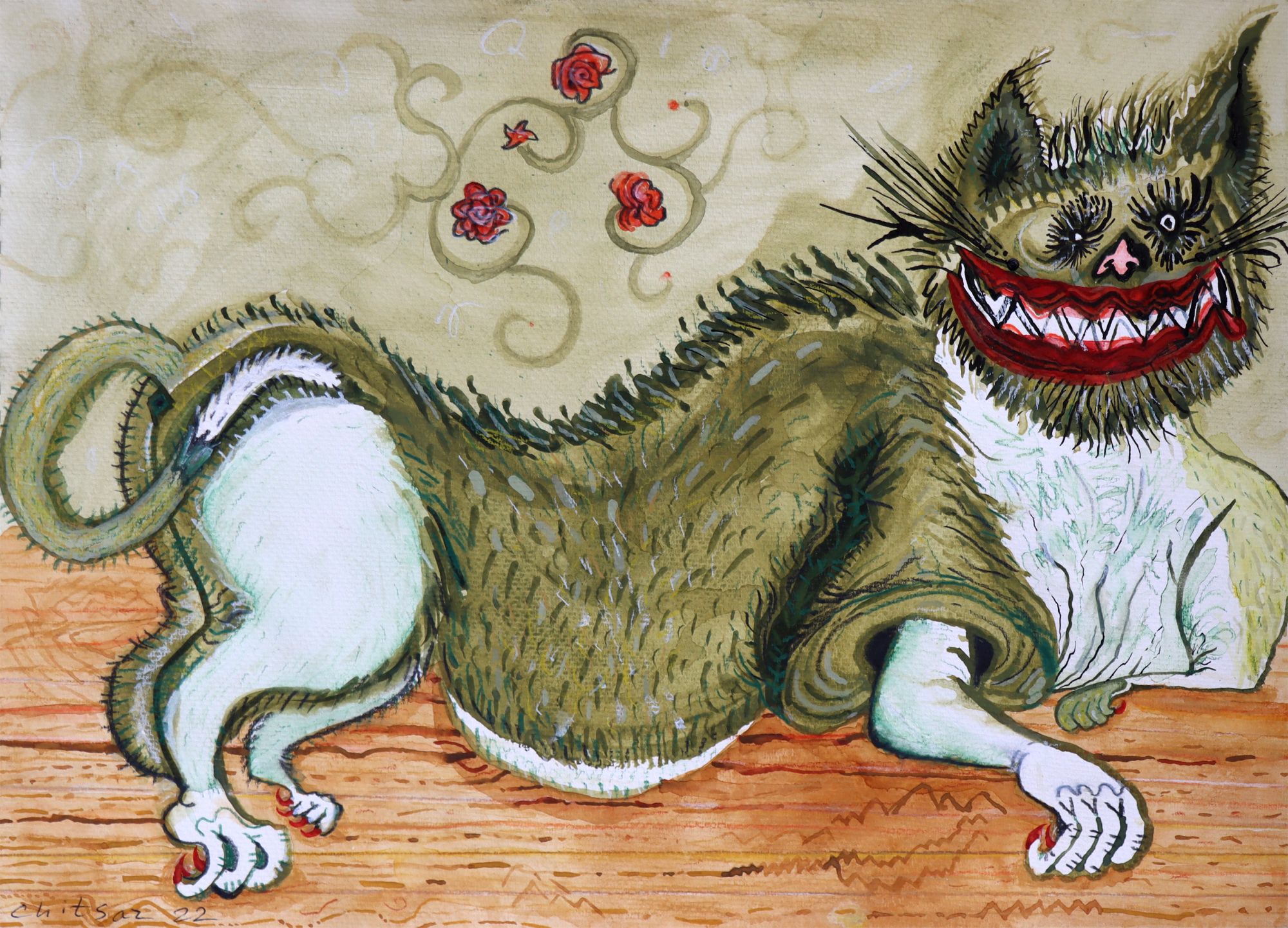 Али Читсаз — современный художник, чьи работы отличают яркие цвета, упрощённые формы и преувеличенные перспективы. Его художественный подход сочетает остроумие с элементами чёрного юмора, изображая хаотичный мир, сформированный насилием и абсурдом. Вдохновляясь как историческими нарративами, так и личными — реальными или воображаемыми — переживаниями, Читсаз создает картины, в которых за игривой, на первый взгляд наивной поверхностью скрываются отсылки к иранской художественной традиции и размышления о современных социальных и политических реалиях.