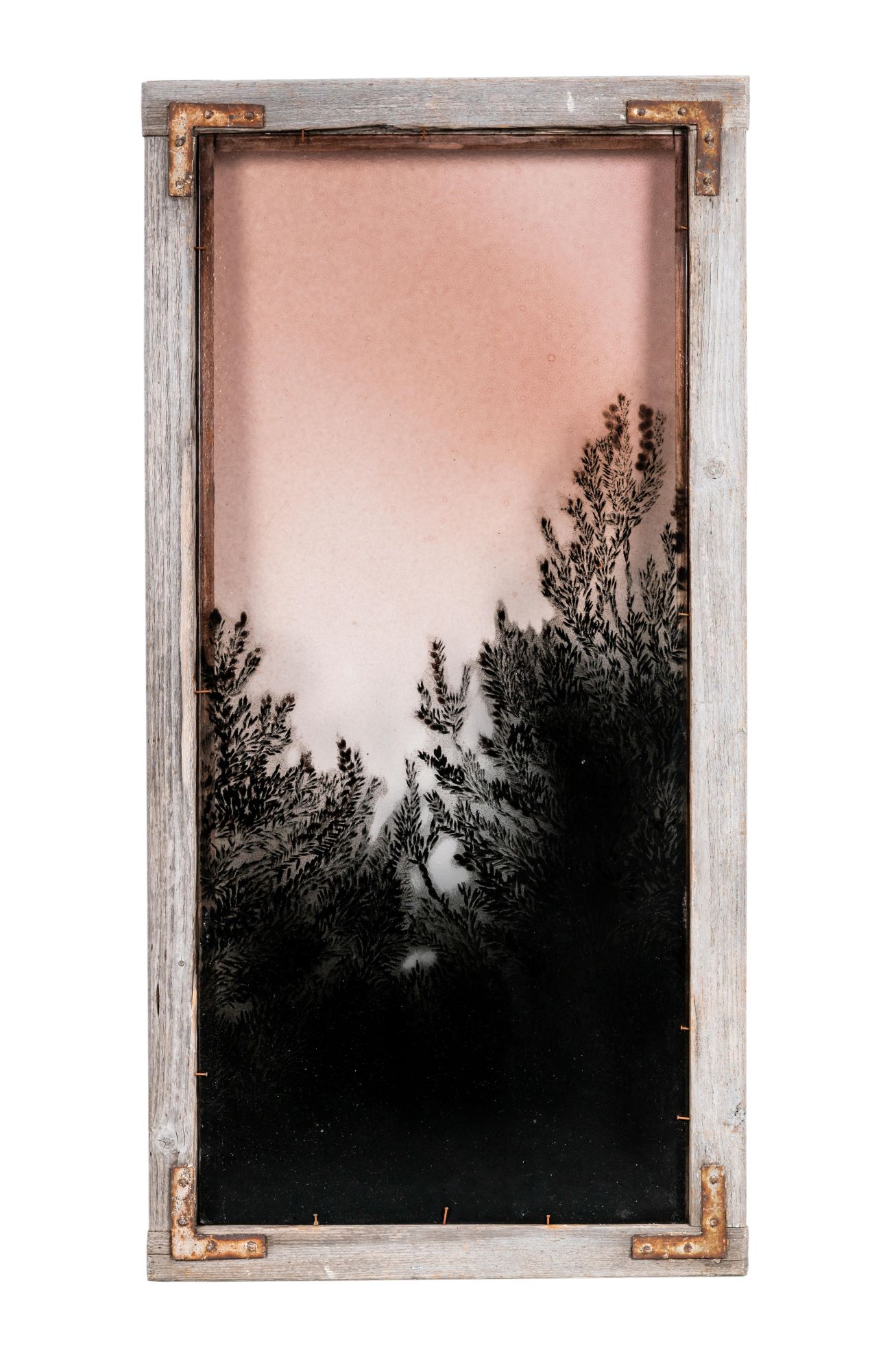 The basis for the work “Cold evening in Matukai” was the artist’s desire to save local barns that were abandoned due to the mass emigration that began in Lithuania after joining the European Union in 2005. Before the buildings were demolished, Serapinas managed to capture on film the last reflections of the surrounding area in their windows. In collaboration with local stained glass artisans, these scenes were recreated and immortalized on the dismantled glass of the structures.
