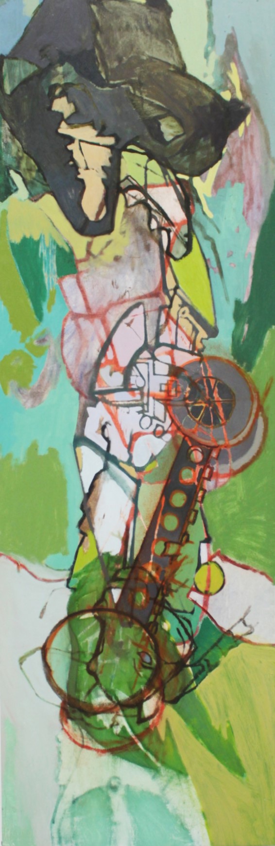 In his creative work there is a mix of abstract and figurative elements that create bodies of shapes where new things appear along the way. He uses a very intuitive way of painting, in which the final result is never expected.