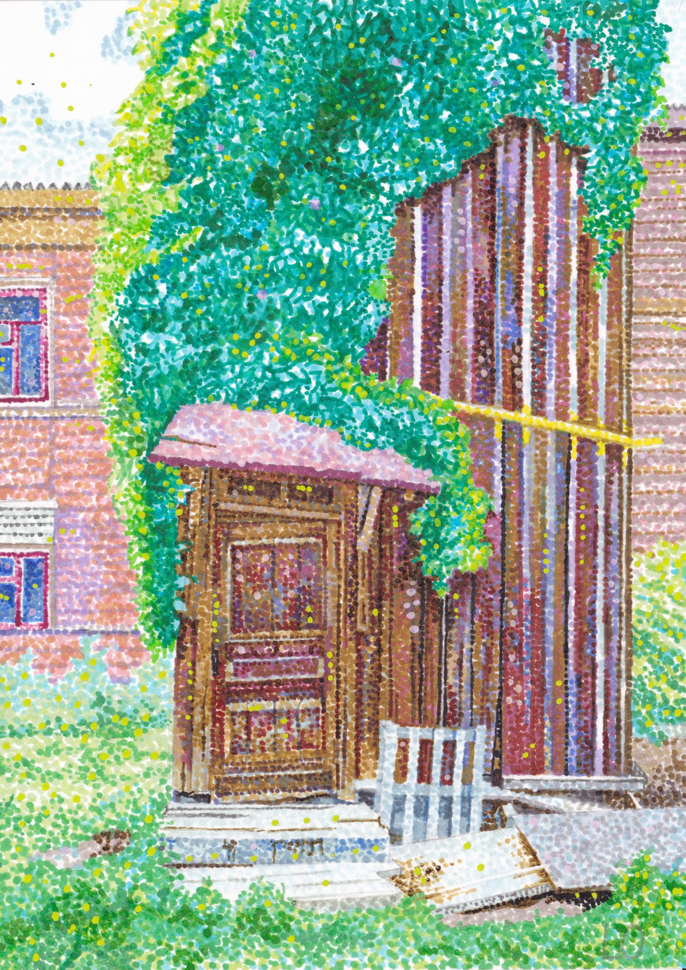 Люба Образцова переизобретает пуантилизм, раскладывая окружающий ее мир на атомы. Люба окончила художественное училище им. Рериха и успела поработать реставратором. Теоретическую базу Обрзацова добирала в Академии Художеств. С 2020 года входит в состав Новых городских художников. К наиболее ярким работам художницы относятся точечные серии графических листов. Серия «По дороге в диспансер» погружает в неспешную прогулку по обшарпанным дворам. В рамках издательского проекта AMINAZINE (который получил поддержку фонда Cosmoscow) был издан зин с «прогулкой», который теперь можно встретить во многих музейных библиотеках – от Гаража до Центра Помпиду. Еще одна серия, посвященная непарадному Нижнему Новгороду, появилась в 2025 году по итогам участия художницы в программе нижегородских арт-резиденций. Часть работ была представлена на Cosmoscow и полностью распродана в день превью. Также эти работы успели засветиться в галерее Пальто.