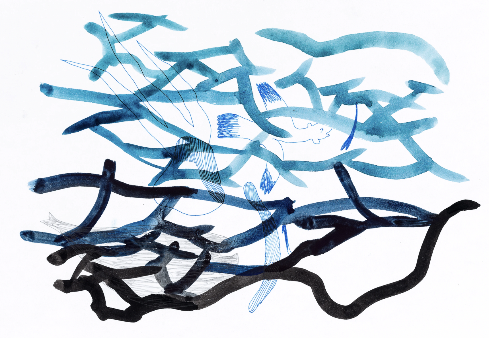 Materials: watercolor, ink, gel pen on paper