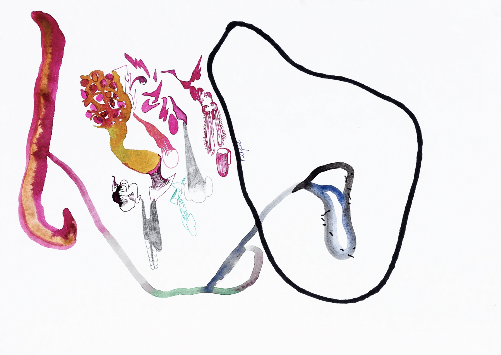 Materials: watercolor, pencil, gel pen on paper
