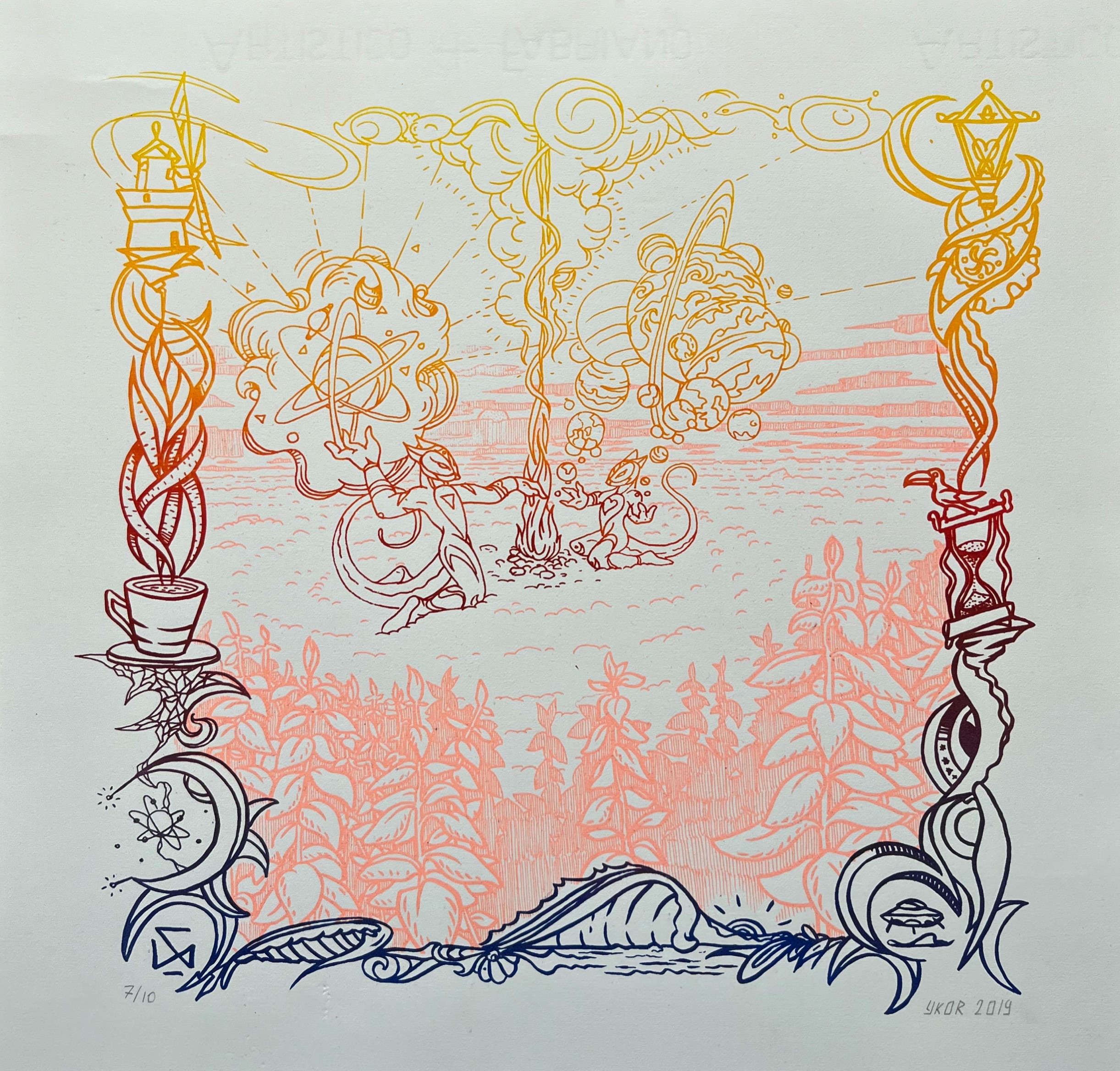 Materials: silk-screen printing, mixed paint, 300 g cotton paper.