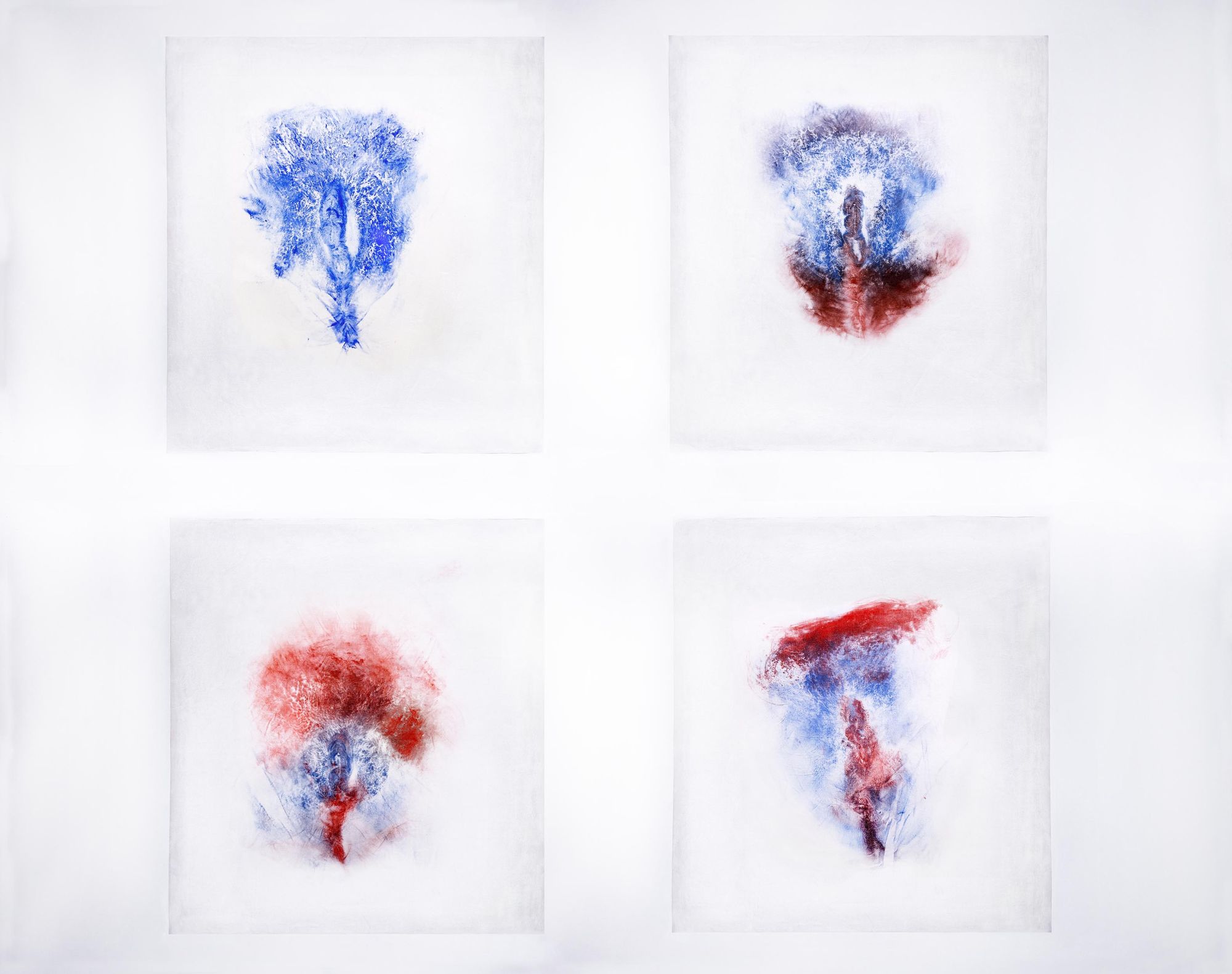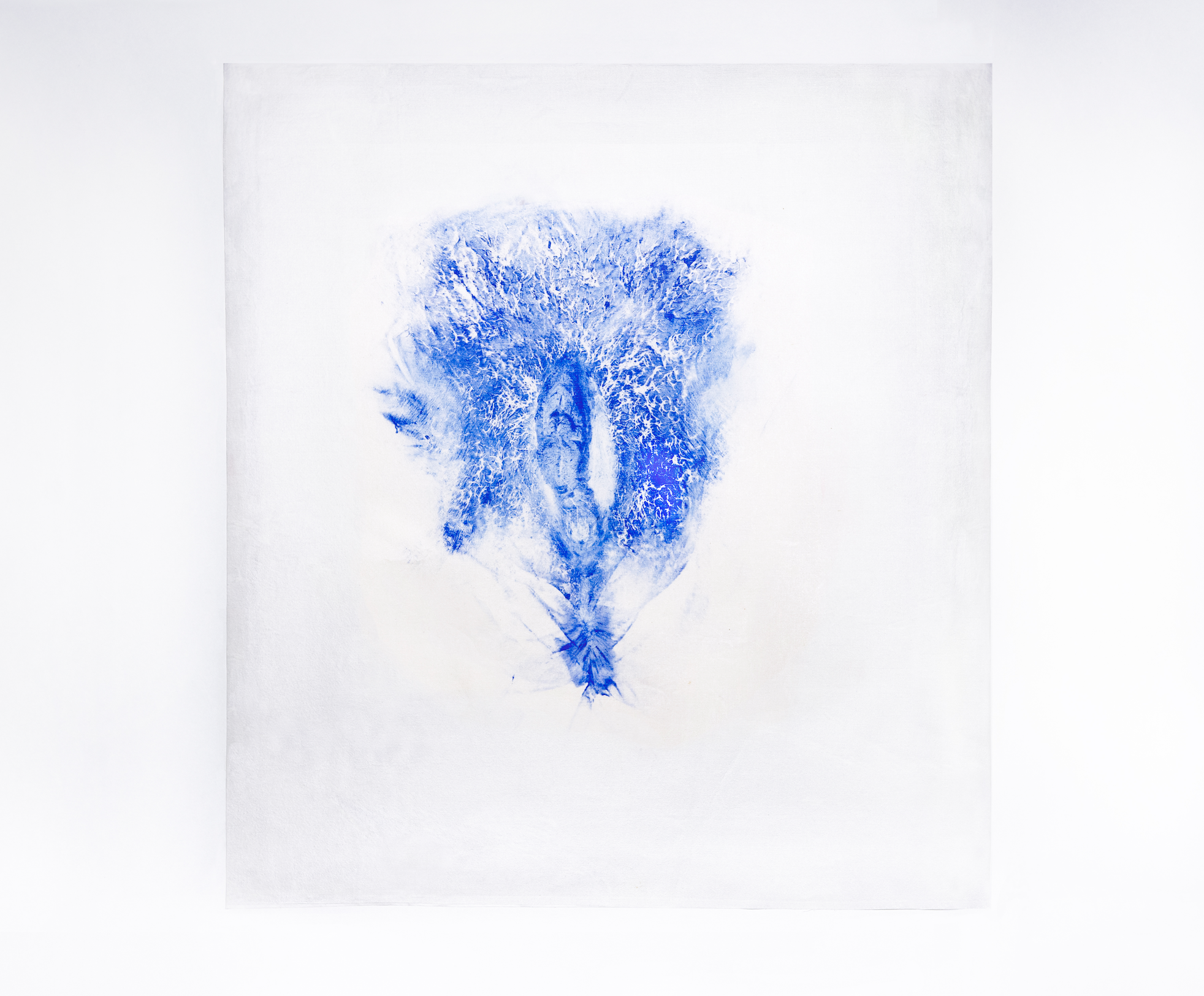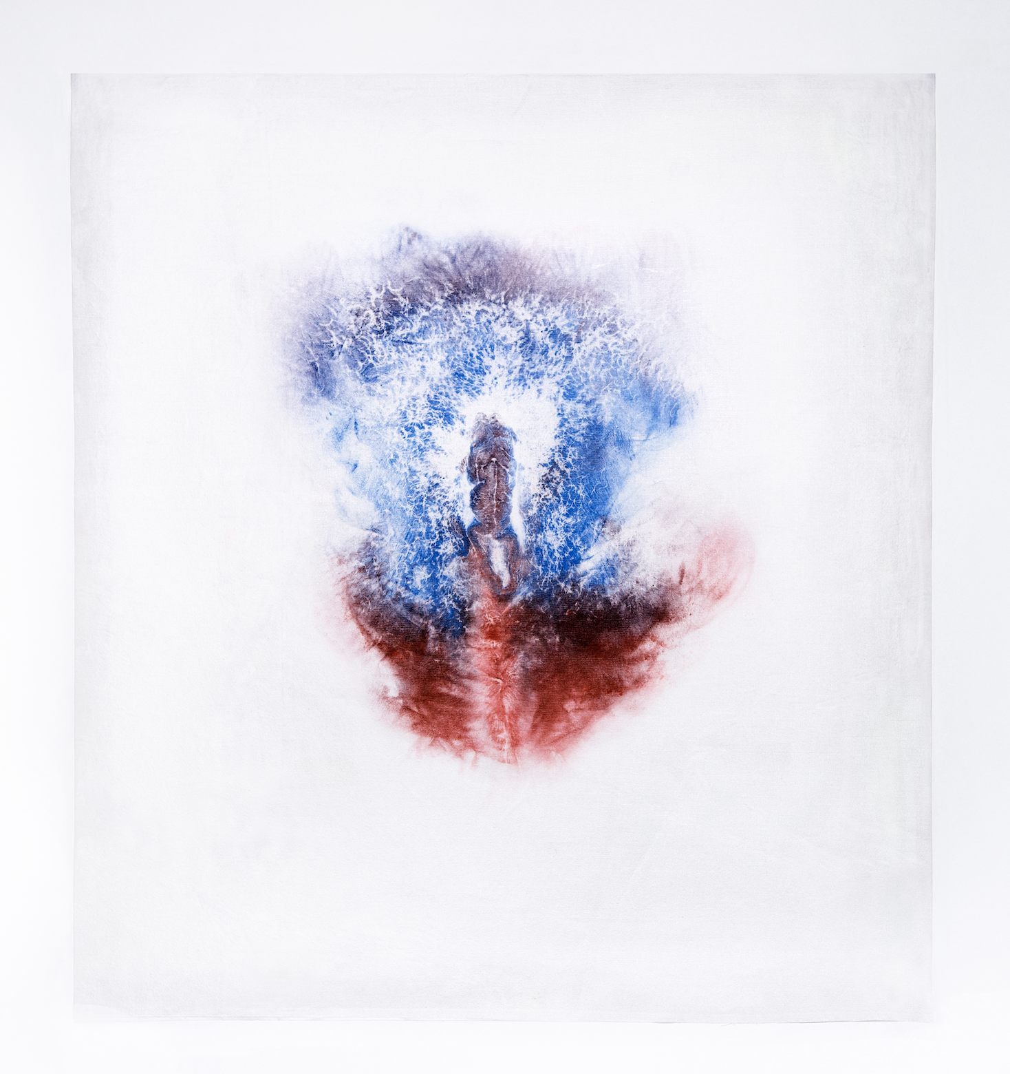 Больше полугода я жила и работала моделью в Японии, оттуда я увезла технику печати мертвыми морскими животными на тончайшем шелке . Это инверсия моих видеоработ - вместо разрушения плоти, я создаю жизнь из мертвого существа, обреченного быть купленным на рынке, а после сожранным. В этой технике я выполнила отпечатки своей вульвы используя китайскую киноварную пасту, в состав которой входит ртуть. Обычно ее используют, чтобы проставить печать владения. В моем случае, тело служит мне рельефным оттиском, чтобы проставить мою собственную, уникальную печать владения. Количество отпечатков ограничено, мое саморазрушение должно тянуться достаточно долго, чтобы прекрасные вещи могли рождаться.