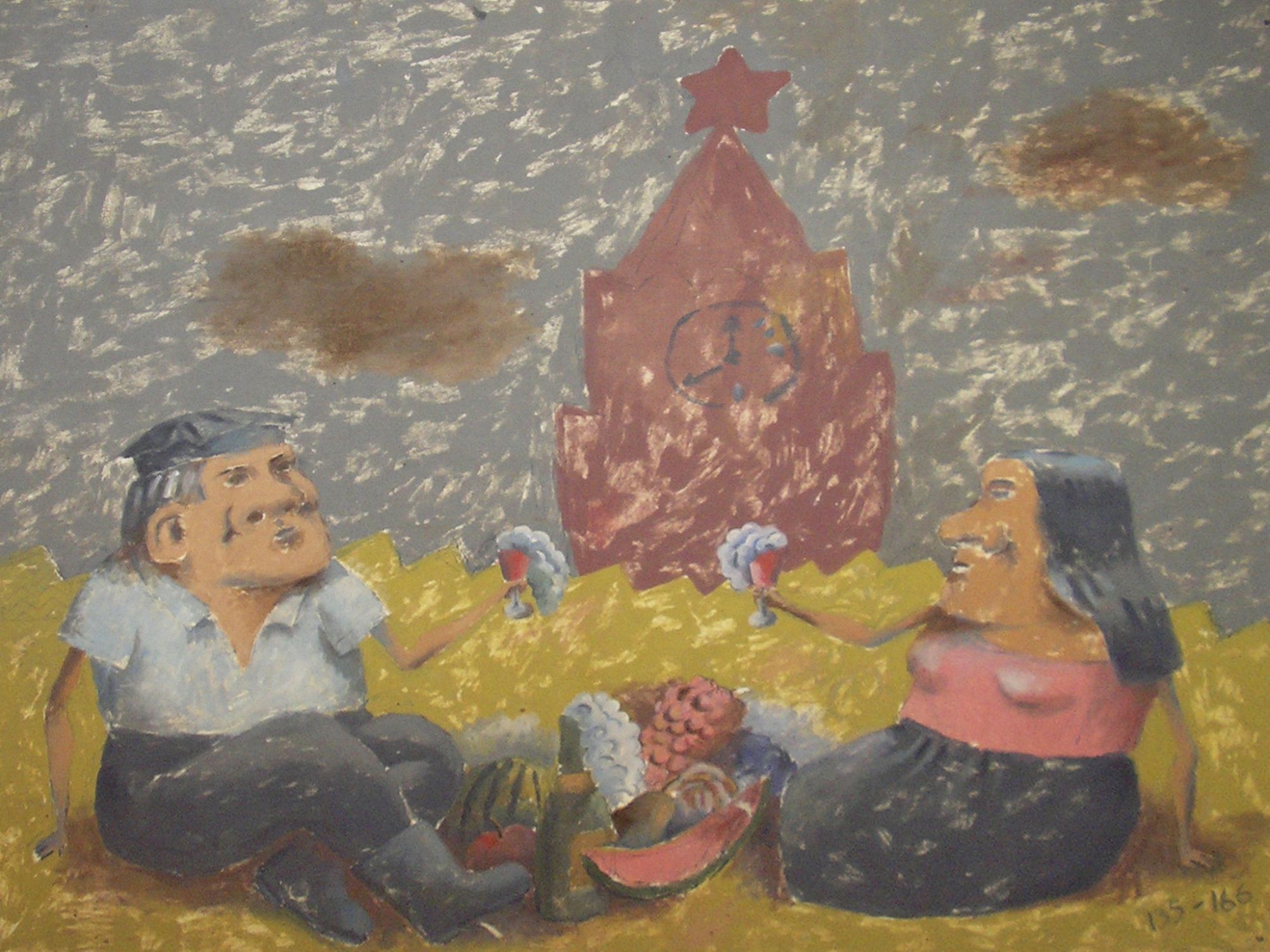 Arkady Petrov is one of the most famous artists of the “seventies” generation, in whose work both the unique personality and typical features of the art of this time were reflected. The main motive of Petrov’s art is the life and culture of the Soviet province of the mid-twentieth century. More broadly, the life of the “simple Soviet man” as a special case of the “little man”, one of the traditions that determine Russian culture. The artist reinterprets the stereotypes of Soviet society, looking at them through the prism of kitsch, and images of Russian mass culture - from painted postcards to portraits of Alla Pugacheva, a famous Russian singer. Petrov transformed the impersonal aesthetics of kitsch into a gallery of human types, naive and epic at the same time, depicting a unique slice of the era.