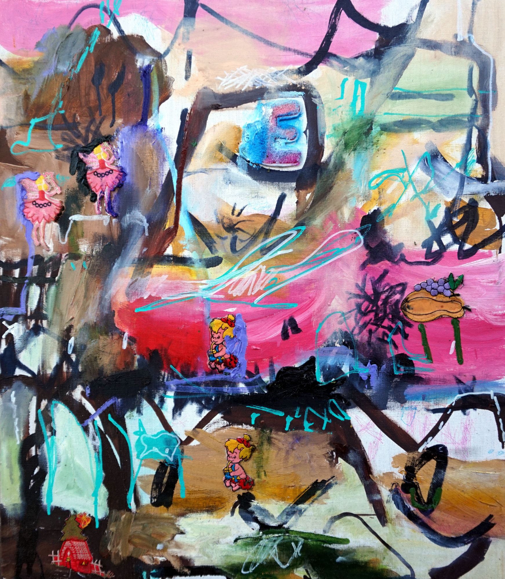 His semi-abstract objects made of wood, toys, fabric, and enameled metal resemble monsters, mutated organics and deformed figures of people. These images with a touch of expressionist manner can also be found in his painting. He combines several pieces in installations built around fictional stories and characters.