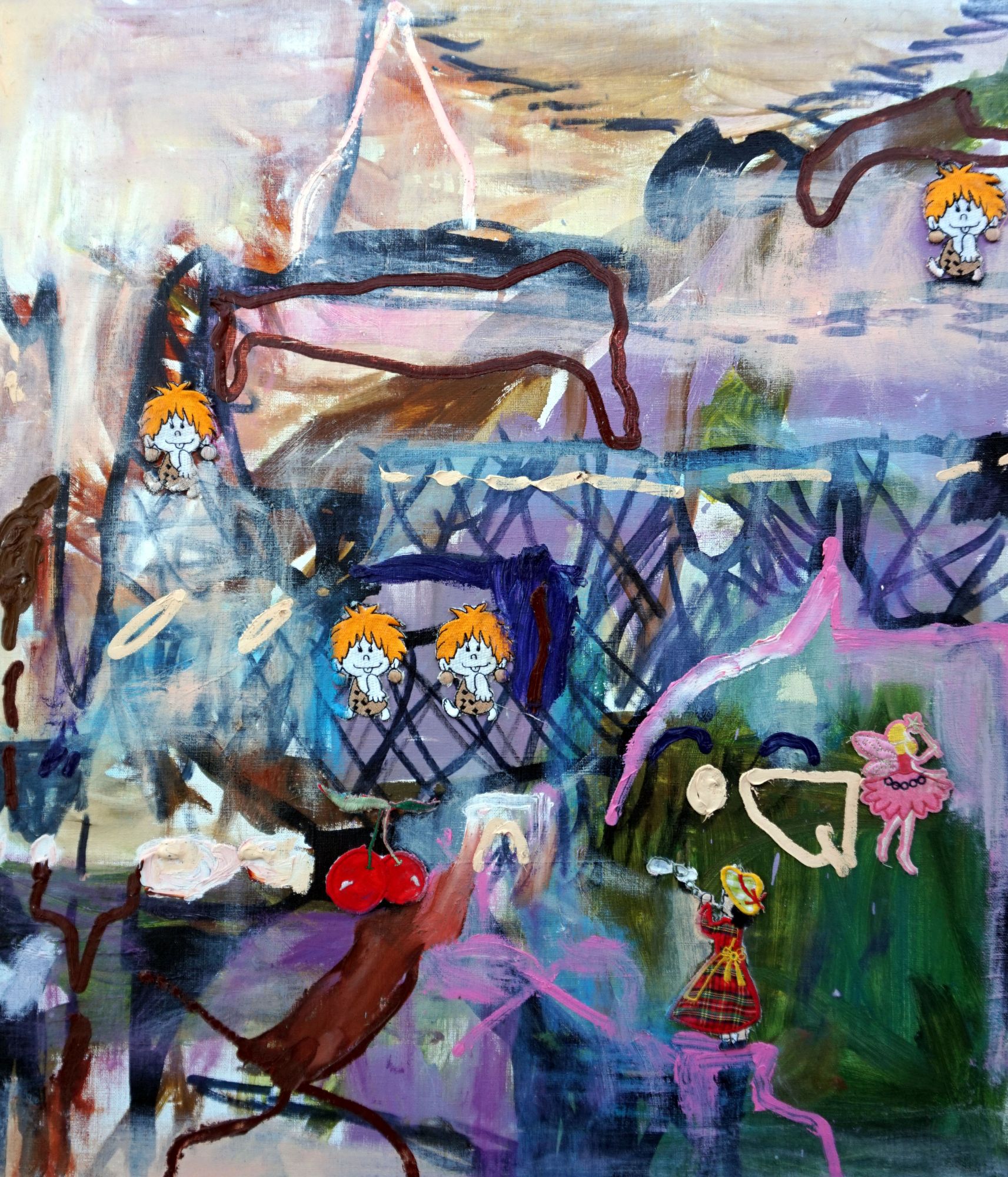 Materials: canvas, oil, thermo-stickers, glue, pencils, markers