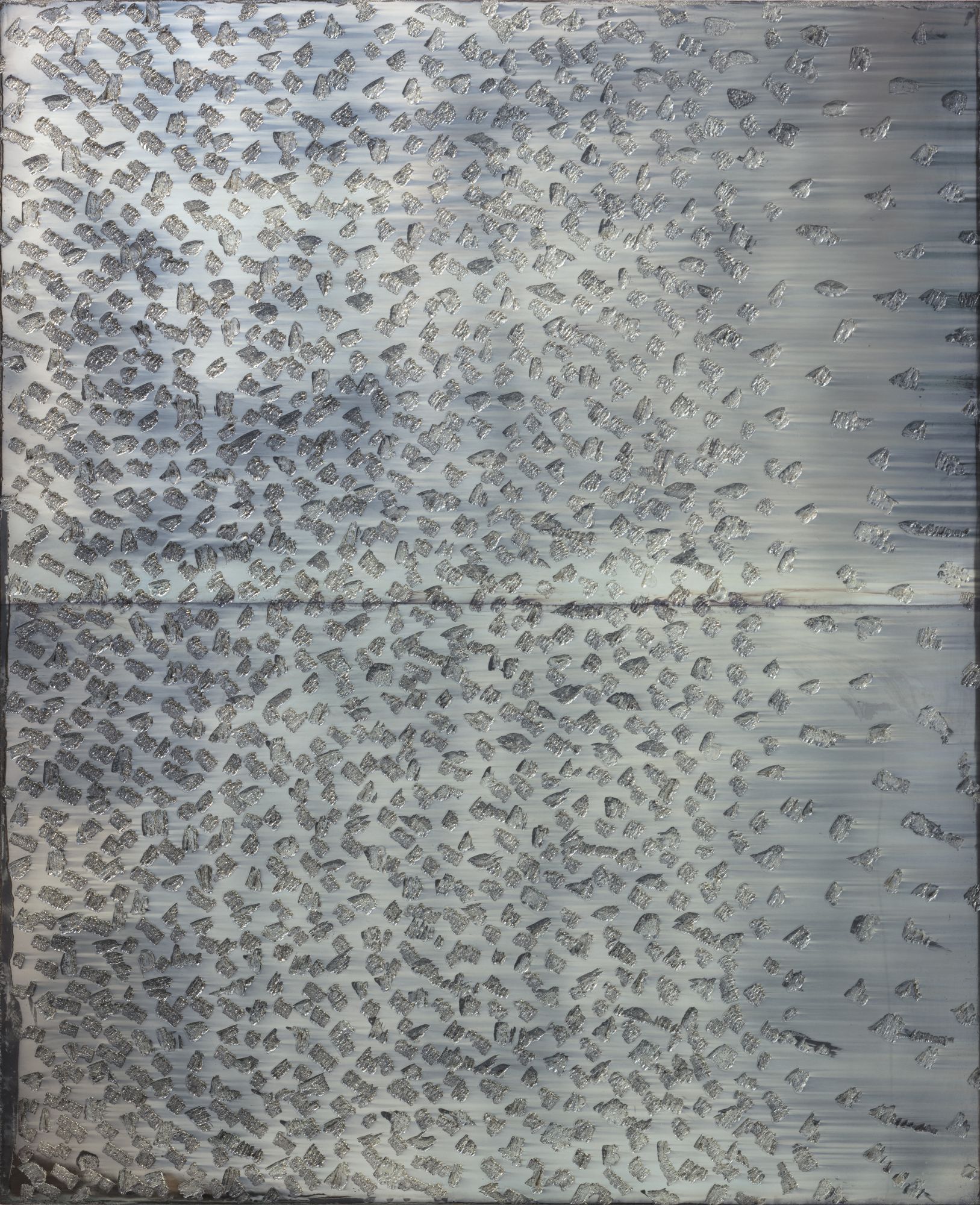 Anton works at the confluence of paintings and objects, creating a canvas that acquires sculptural characteristics thanks to its metallized color combinations. Flowing, reflecting and distorting the visible, it is as if Konukhov’s painting wants to go outside its own boundaries, conquer the external space, and re-encode the relationships that exist within it.