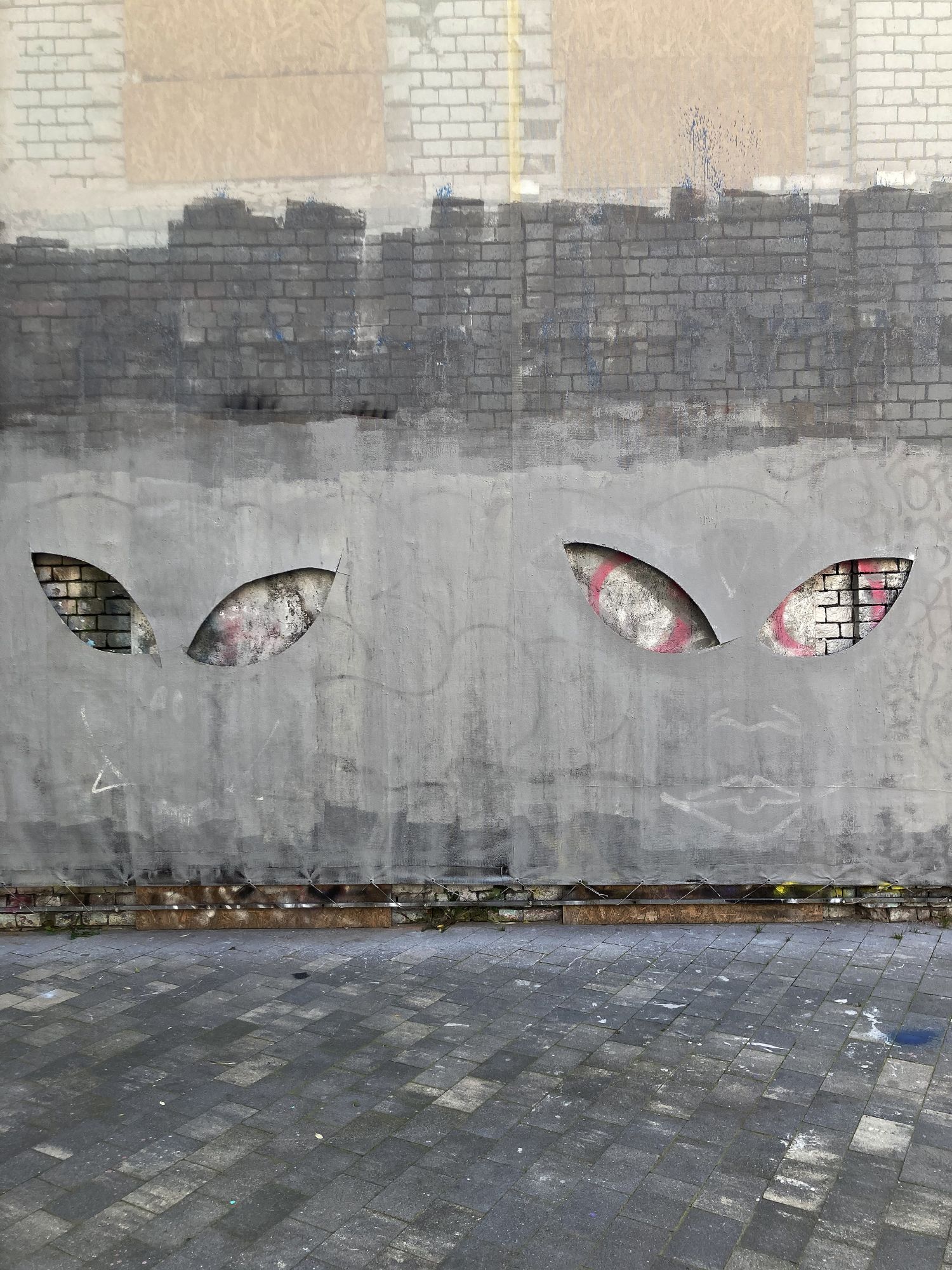 Kirill Lebedev (Kto) is something of a cult figure within Moscow’s street art subculture, contributing immensely not only through his diverse work as an artist, but also as one of the few theorists and curators of street art. In his efforts to create a more self-conscious, intelligent, and meaningful culture for the streets, Lebedev has systematically declared war on hollow practices such as tagging and purposeless graffiti, while continually questioning and revisiting his own beliefs and convictions as an artist. His recent works are often dark and pessimistic messages executed in psychedelic patchworks of color, and are at once uplifting and disquieting. For the Moscow Garage Triennial in 2017, Lebedev created a monumental work on a wall of the Gorky Park administration building. The wall that has been made available to him for this purpose is one he says he has been interested in for a while. The wall is strange in that it includes two sets of stairs leading nowhere, the doorways having long been sealed. Ladders are a longtime passion for Lebedev, and Muscovites may remember the strange ladder-insect creature that has slowly crawled the walls of the city since 2001. The artist explains with affection how this creature spends its life crawling upwards and discovering new territories and, when it dies, its body fossilizes and others can use it as a bridge.