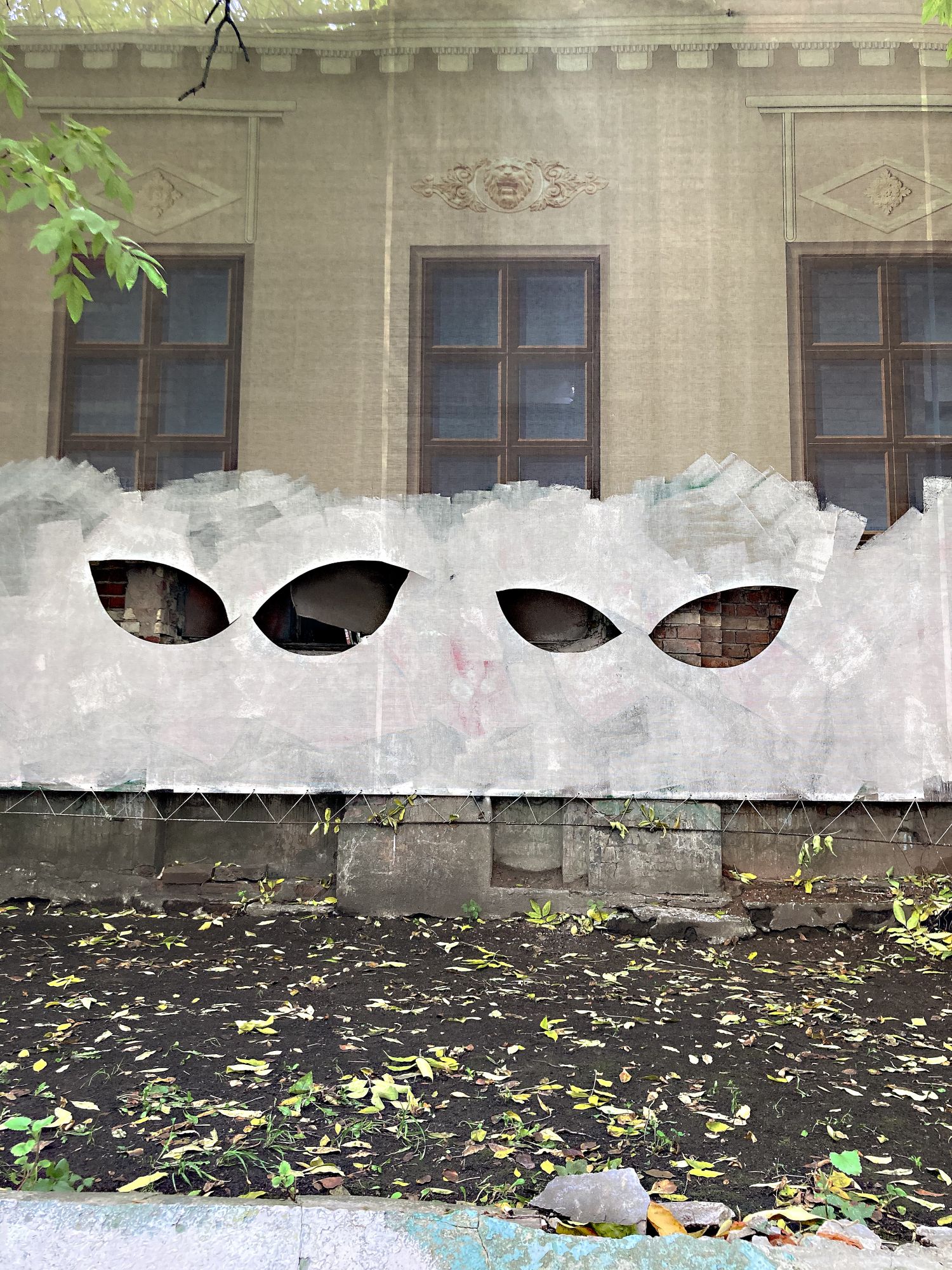 Kirill Lebedev (Kto) is something of a cult figure within Moscow’s street art subculture, contributing immensely not only through his diverse work as an artist, but also as one of the few theorists and curators of street art. In his efforts to create a more self-conscious, intelligent, and meaningful culture for the streets, Lebedev has systematically declared war on hollow practices such as tagging and purposeless graffiti, while continually questioning and revisiting his own beliefs and convictions as an artist. His recent works are often dark and pessimistic messages executed in psychedelic patchworks of color, and are at once uplifting and disquieting. For the Moscow Garage Triennial in 2017, Lebedev created a monumental work on a wall of the Gorky Park administration building. The wall that has been made available to him for this purpose is one he says he has been interested in for a while. The wall is strange in that it includes two sets of stairs leading nowhere, the doorways having long been sealed. Ladders are a longtime passion for Lebedev, and Muscovites may remember the strange ladder-insect creature that has slowly crawled the walls of the city since 2001. The artist explains with affection how this creature spends its life crawling upwards and discovering new territories and, when it dies, its body fossilizes and others can use it as a bridge.