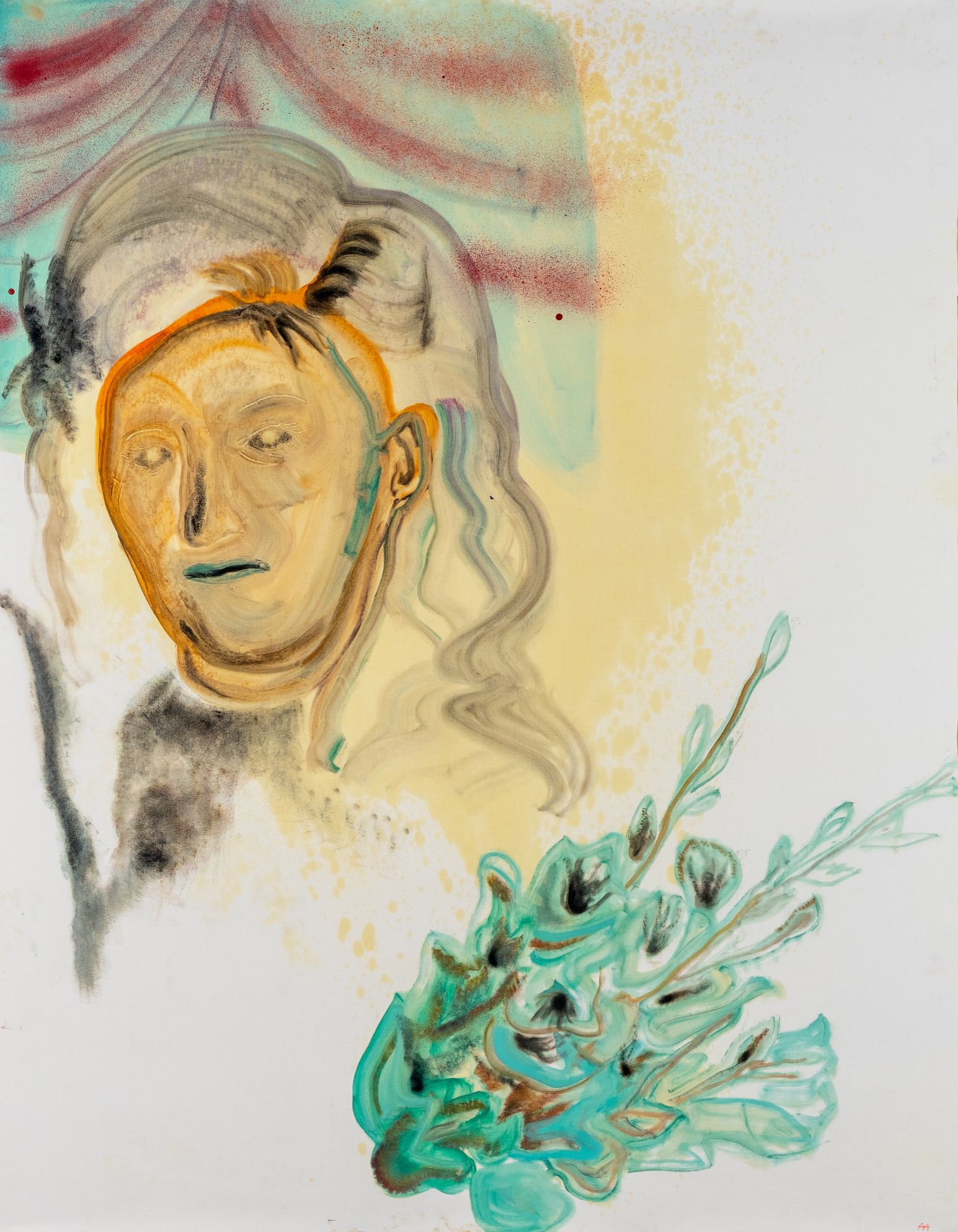 Materials: oil, felt-tip pens, fluorescent marker on canvas