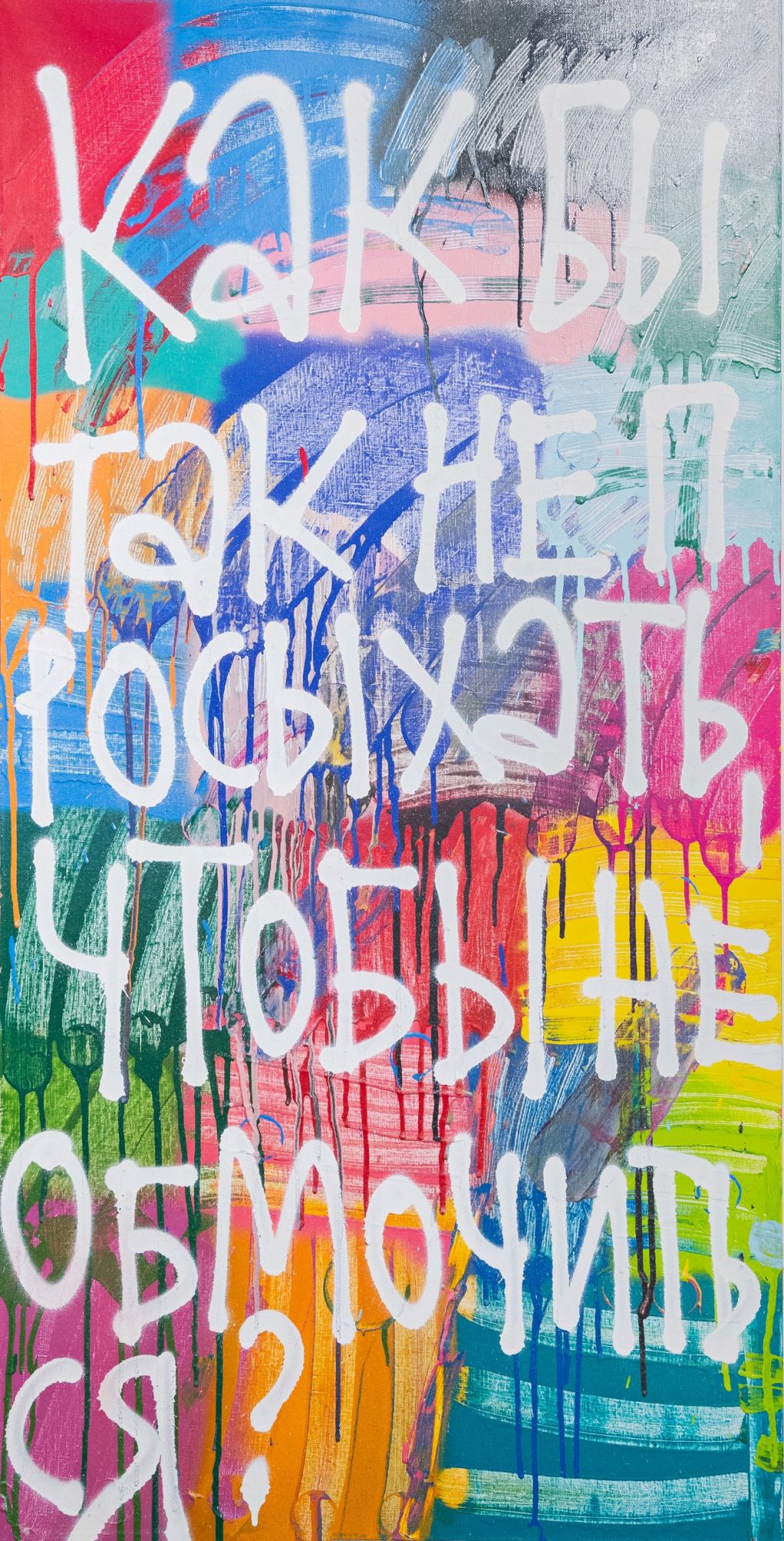 Kirill Lebedev (Kto) is something of a cult figure within Moscow’s street art subculture, contributing immensely not only through his diverse work as an artist, but also as one of the few theorists and curators of street art. In his efforts to create a more self-conscious, intelligent, and meaningful culture for the streets, Lebedev has systematically declared war on hollow practices such as tagging and purposeless graffiti, while continually questioning and revisiting his own beliefs and convictions as an artist. His recent works are often dark and pessimistic messages executed in psychedelic patchworks of color, and are at once uplifting and disquieting. For the Moscow Garage Triennial in 2017, Lebedev created a monumental work on a wall of the Gorky Park administration building. The wall that has been made available to him for this purpose is one he says he has been interested in for a while. The wall is strange in that it includes two sets of stairs leading nowhere, the doorways having long been sealed. Ladders are a longtime passion for Lebedev, and Muscovites may remember the strange ladder-insect creature that has slowly crawled the walls of the city since 2001. The artist explains with affection how this creature spends its life crawling upwards and discovering new territories and, when it dies, its body fossilizes and others can use it as a bridge.