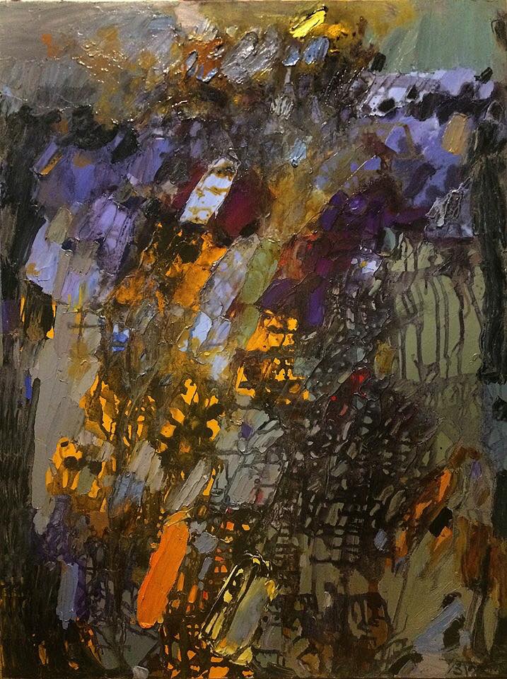 Polina prefers working in abstract expressionism genre, getting inspired from the real architectural ensembles and urban landscapes. Polina Zaremba as a painter is interested in colour. The triumph of colour is key to perceiving an abstract painting. It is a way from being timid in front of the power of colouristic decisions to the freedom of colour expressions, to an emotional splash. This kind of painting does not present the reality the way it is, it supposes an active work of an aesthetic perception, of the artistic mind of a viewer. A work must be vivid, filled, exposed, moving, vibrant like a living being; it must emanate the warmth of a living body even if on the outside it is very calm.