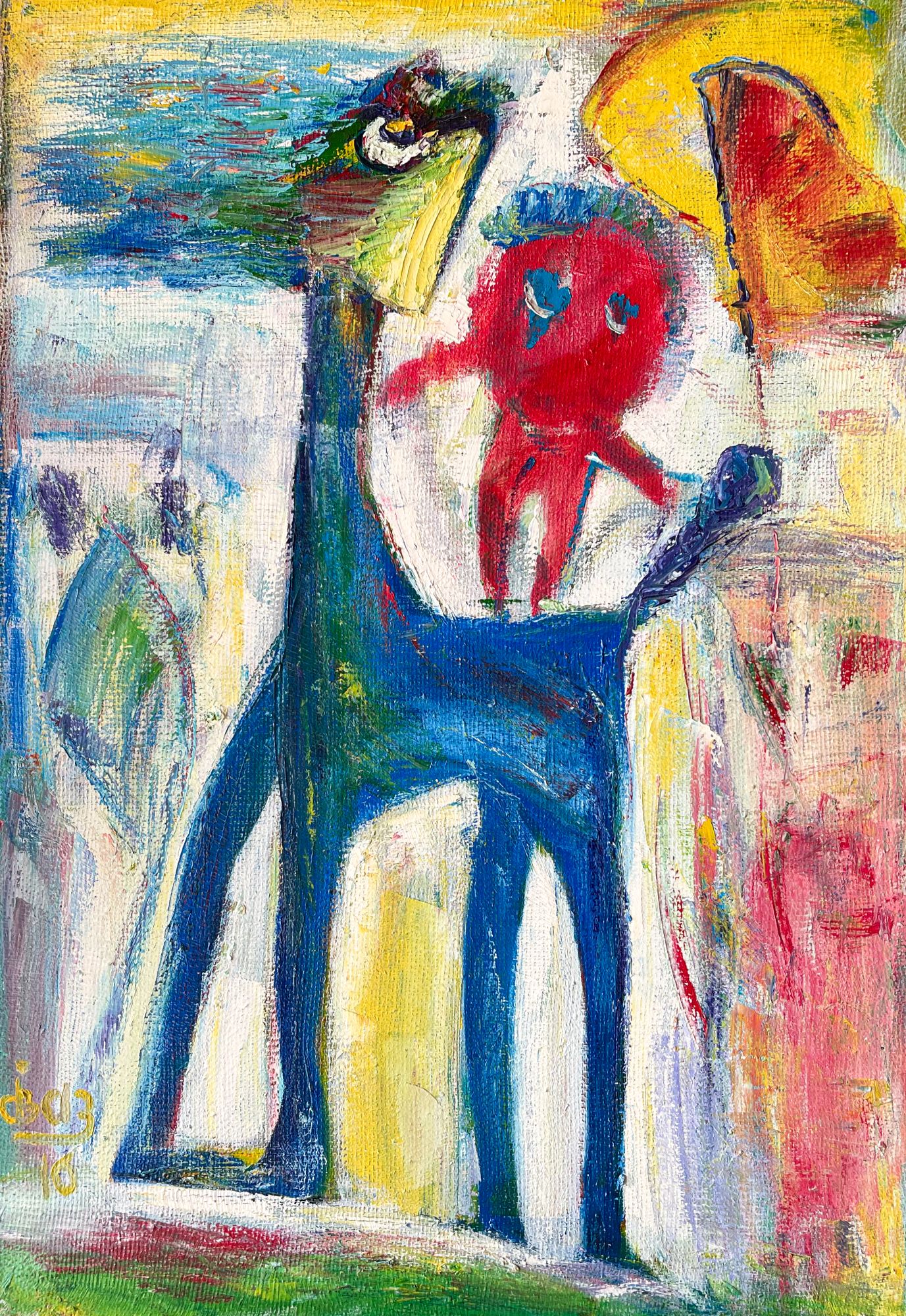 Цирк — это детство, память о наивном удивлении и неподдельном восторге. Поэтому эта картина написана в стиле примитивизма, более всего приближенном к непосредственному детскому восприятию. На этом полотне очень важна композиция: все несущие основной смысл элементы размещены в центре работы. Это концентрирует впечатление и как бы останавливает вихрь циркового темпа, вытягивает и утончает фигуру бегущей лошади, превращая ее в фантастического единорога, а наездника — в сказочного гнома. Яркий контрастный колорит подчеркивает ощущение праздничной феерии. Но у наездника, да и у лошади грустные и напряженные глаза, эта деталь намекает о том, сколько изнурительного труда предшествует празднику.