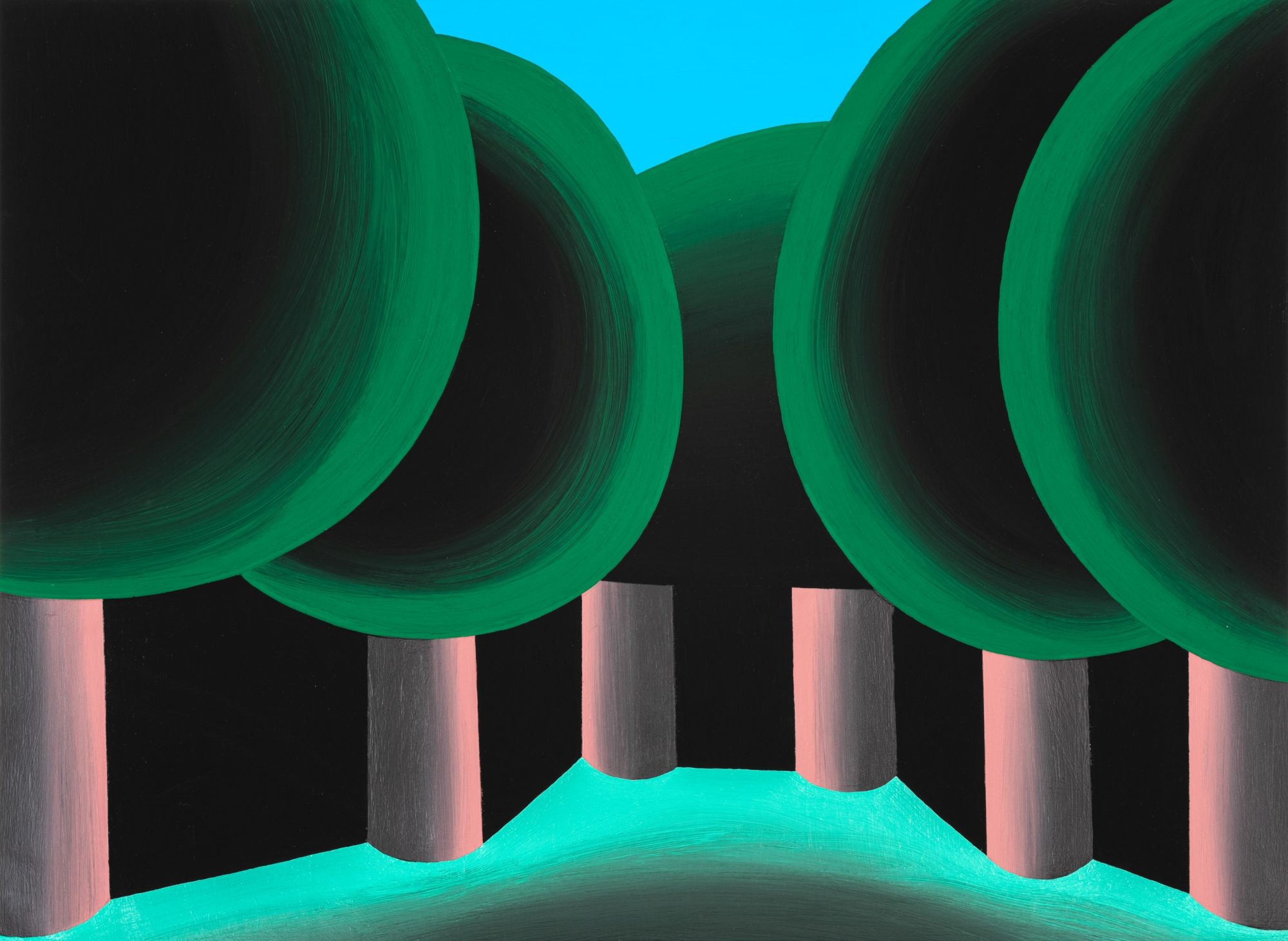Oleg Khvostov uses themes from traditional painting genres — landscapes, still-lifes, portraits, multi-figured compositions — but also includes numerous "remakes" of world-famous works of art, from Leonardo to Jeff Koons. Nonetheless, his characteristic method of consciously simplifying form, freeing it from excess detail, and giving underscored roundness and cylindricity to shapes, in conjunction with his bold colors and large canvases, make his artistic manner original and easily identifiable. His use of a vivid, contrastive color palette and his deliberate simplicity imbue the artist's works with the decorative effect and irony of pop art.