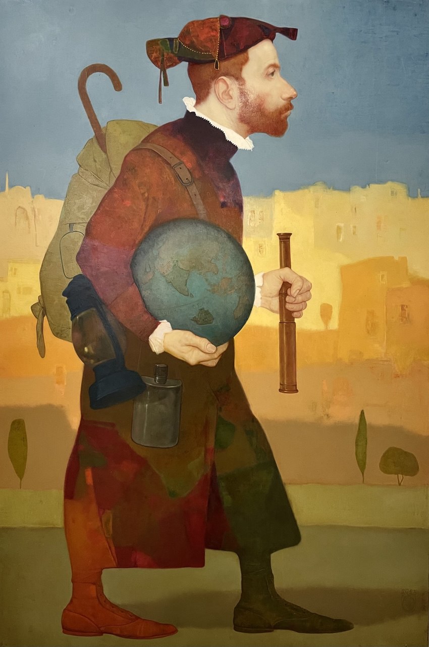 During his entire career, Didebashvili worked with both figurative and abstract painting, and in the end he merged two practices together in his late mature portraits. In his practice Mamuka employs the intricate and demanding layered Flemish painting technique that was used by the old masters of the Northern Renaissance. At first, Mamuka’s characters seem to resemble the ones of the Flemish masters, but because of the bright colours and the abstract background, Didebashvili’s characters seem to be taken out of any time or georgraphic context.