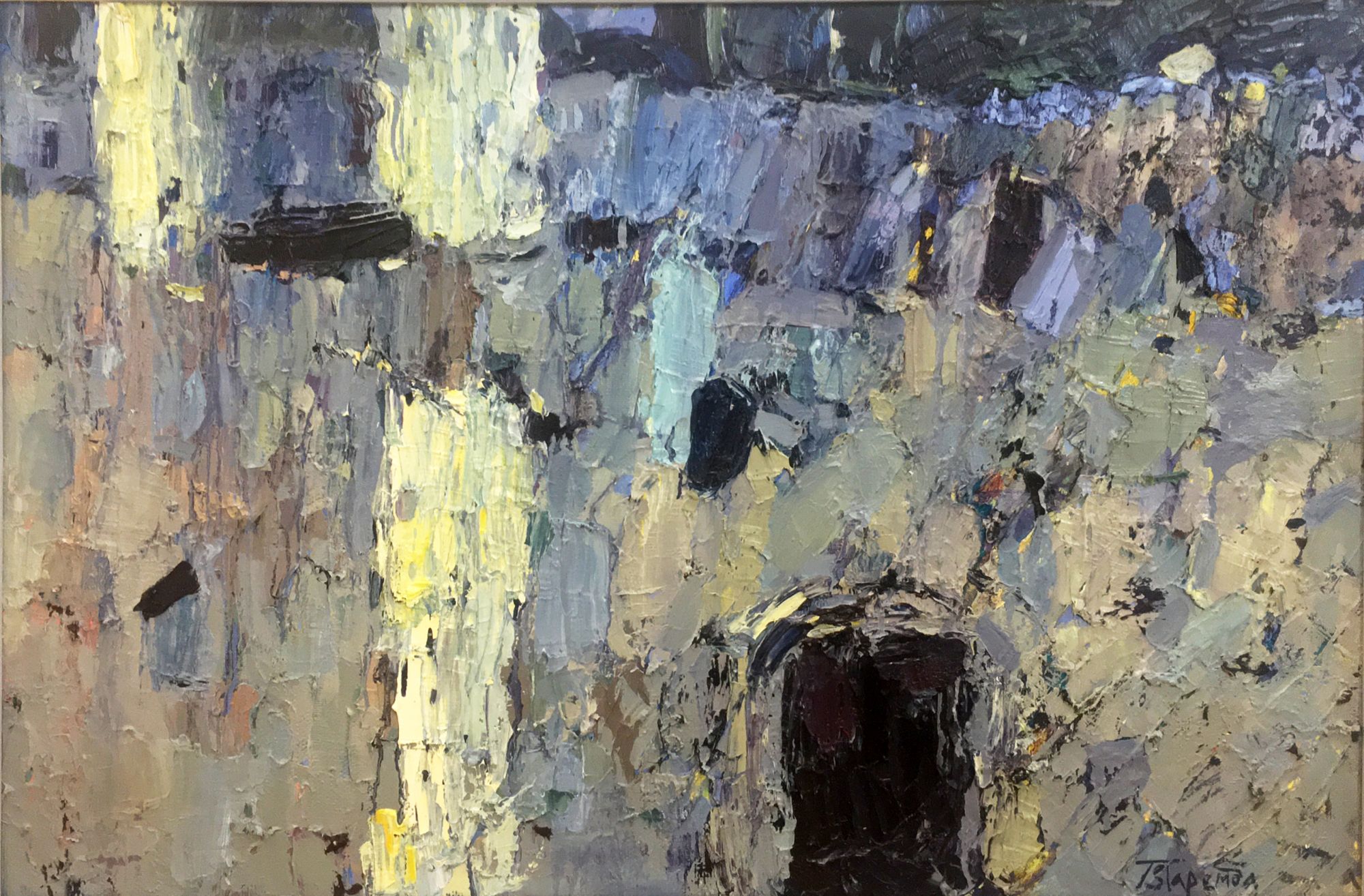 Polina prefers working in abstract expressionism genre, getting inspired from the real architectural ensembles and urban landscapes. Polina Zaremba as a painter is interested in colour. The triumph of colour is key to perceiving an abstract painting. It is a way from being timid in front of the power of colouristic decisions to the freedom of colour expressions, to an emotional splash. This kind of painting does not present the reality the way it is, it supposes an active work of an aesthetic perception, of the artistic mind of a viewer. A work must be vivid, filled, exposed, moving, vibrant like a living being; it must emanate the warmth of a living body even if on the outside it is very calm.