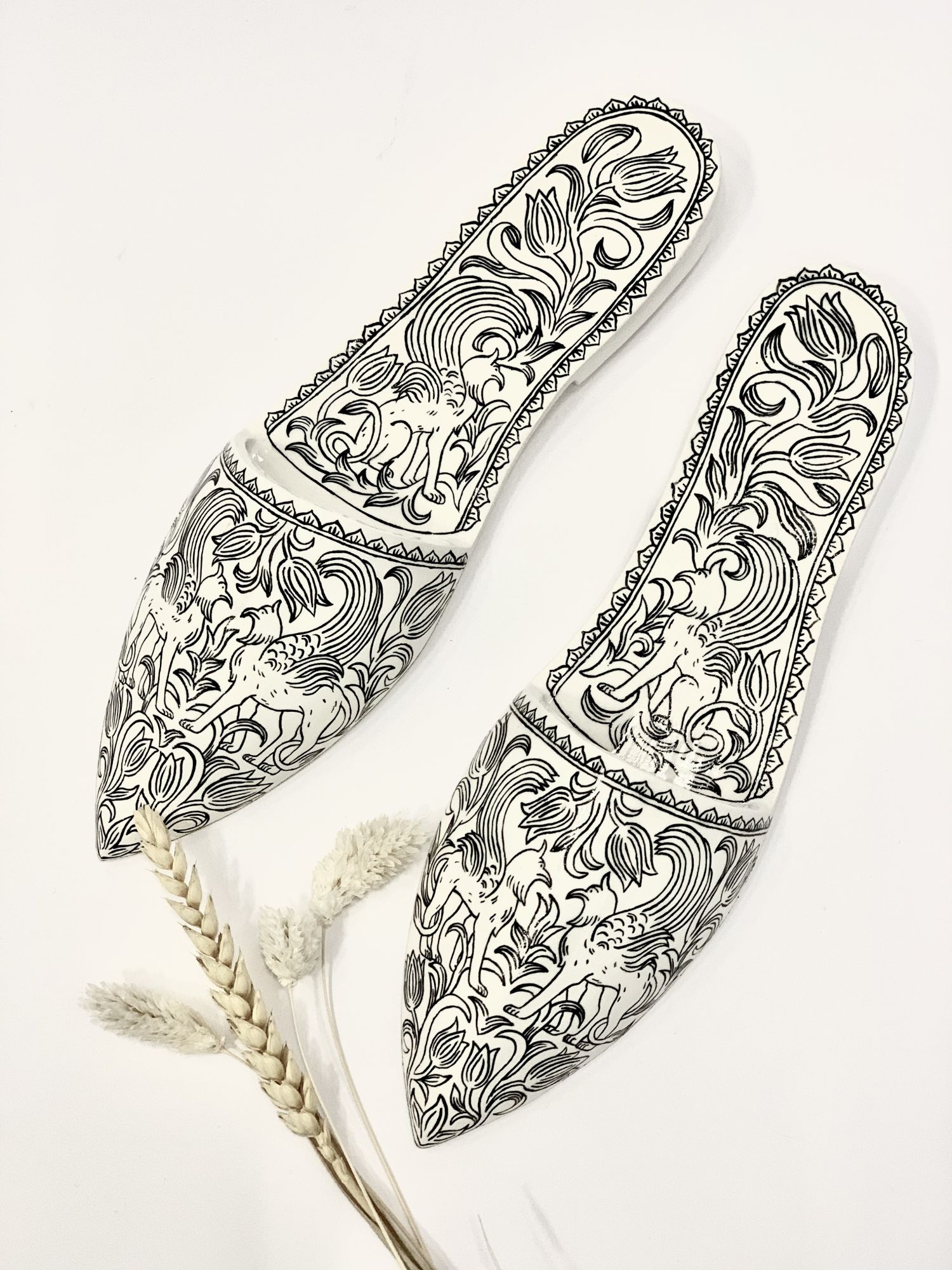 Материалы: Ручная лепка, ручная роспись, беложгущаяся глина, чёрный ангоб, прозрачная глазурь
