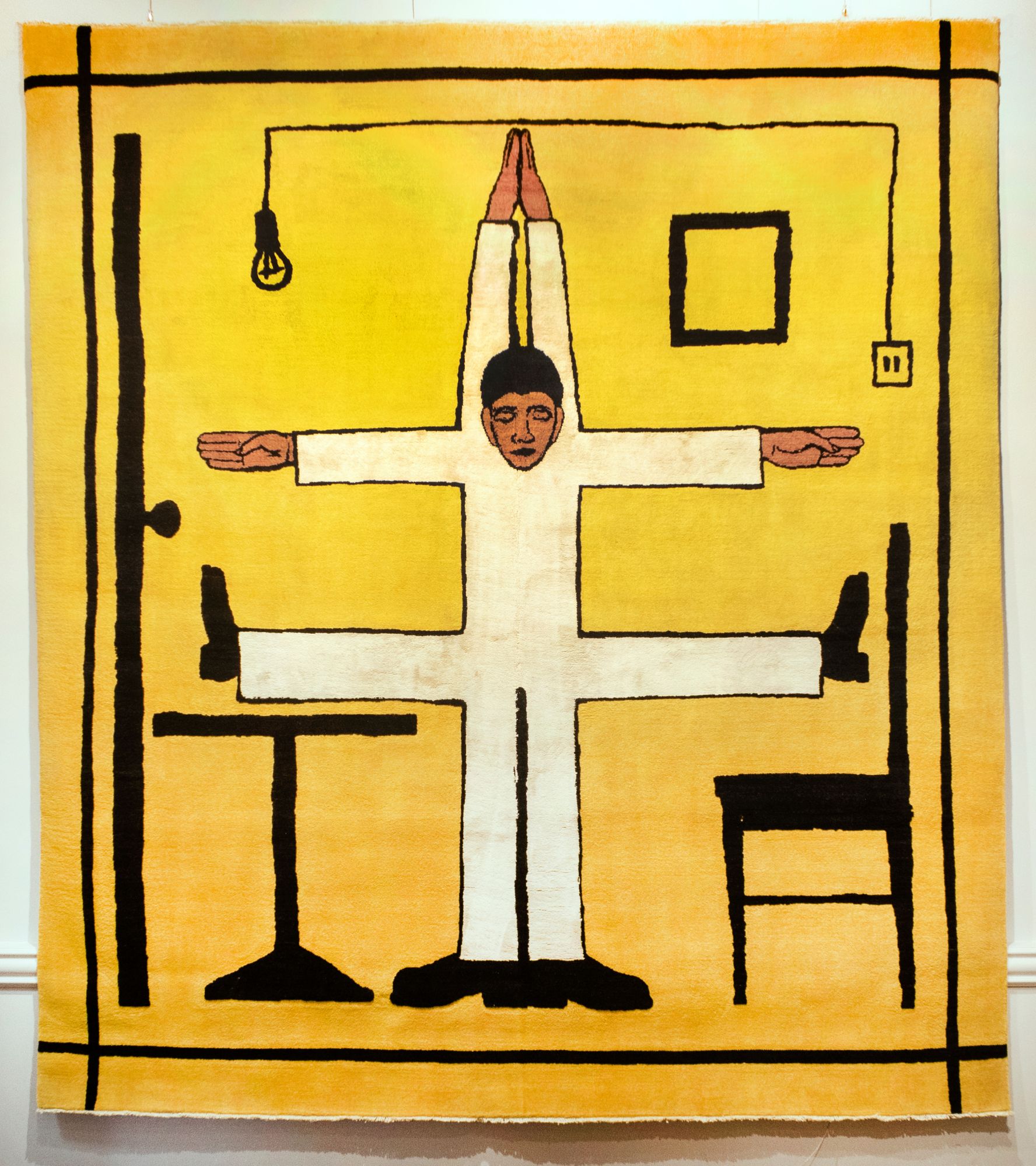 The “Vitruvian Man” carpet is hand-woven in a single copy together with the Atelier CHOUTKO workshops. Reinterpretation of the painting of Leonardo DaVinci's Vitruvian Man in the 21st century in the era of technological revolutions and the Covid epidemic, absorbing the personal element in man.