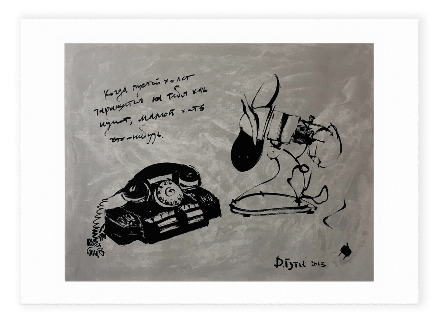 Using his extensive knowledge in the field of Art history, calligraphy and literature, Gutov actively employs the technique of visual citation in his work. The artist appropriates recognisable images from the history of Art, Russian icon painting, oriental calligraphy, creating new "interpretations" of them in the form of large-scale spatial installations, paintings, graphics and metal sculptures. Text often holds a central place in his works – a quote from classical literature or a common phrase taken from life resonate and are relevant today.