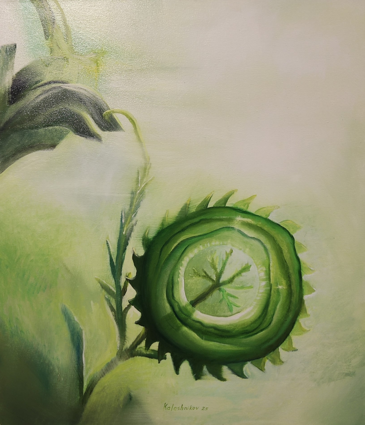 В живописной практике Наримана Калашникова каждый слой краски — это не столько жест утверждения, сколько жест забвения. Его холсты существуют на границе: между образом и его утратой, между намерением и интуитивной ошибкой, между тем, что уже было, и тем, что ещё не стало. Нариман работает с живописью как с памятью, подчиняя плоскость холста логике накопления и вытеснения. Стирая, перезаписывая, заштриховывая, он превращает картину в палимпсест — поверхность, где призраки предыдущих образов продолжают существовать, словно эхо внутри визуального тела. Калашников не столько изображает, сколько позволяет живописи произойти. Материал сопротивляется, отклоняется от замысла, но именно в этом напряжении рождается жест, близкий к духовной практике. Работы художника предельно личны и одновременно анонимны: в них отсутствует нарратив, но присутствует тревожная плотность — как у сна, который не удаётся досмотреть.