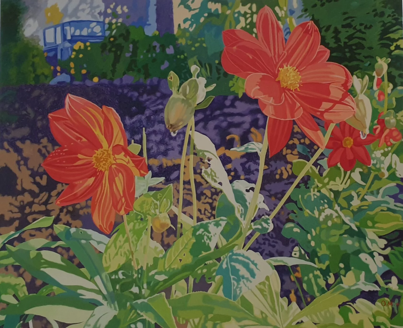 В собственном творчестве Маслова всегда интересовали, прежде всего, две вещи – непреклонное веселье, проявляющееся у него в запоминающейся выразительности образов, и качество живописи. В более поздних работах Олега Маслова яркости красок соответствует слегка затуманенная, несколько выцветшая от времени, как бы скрывающая за собой еще какой-то свет, живопись.