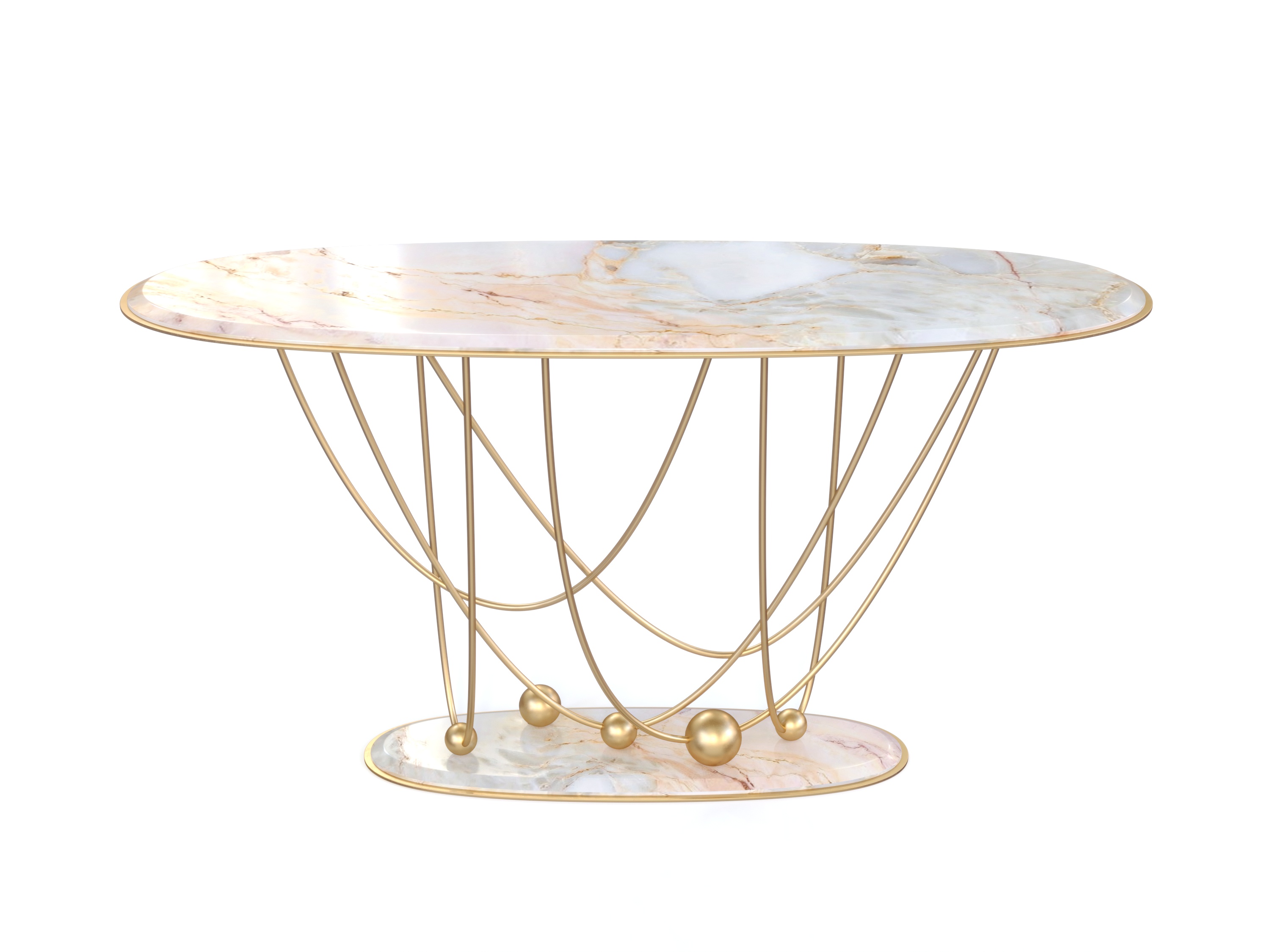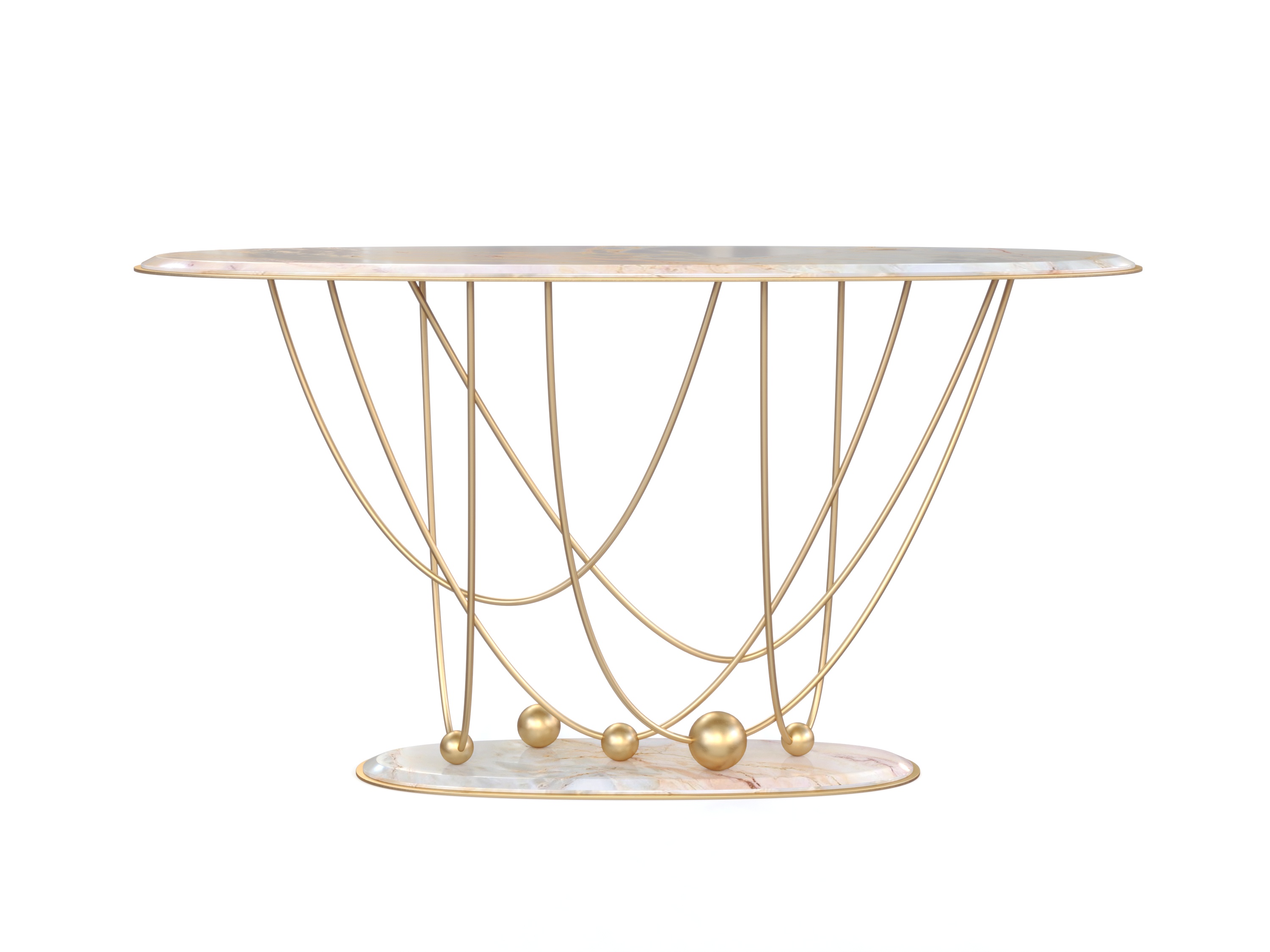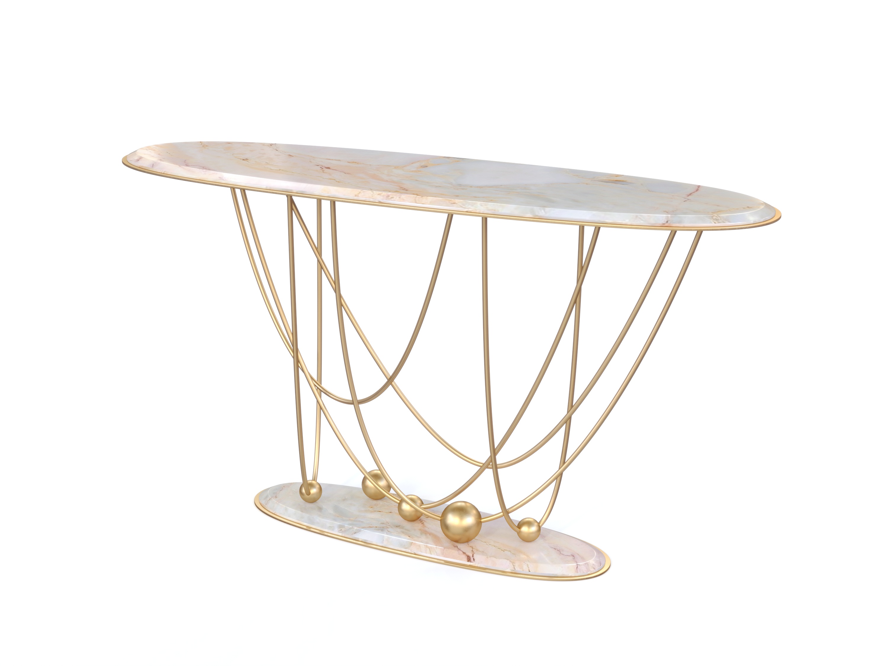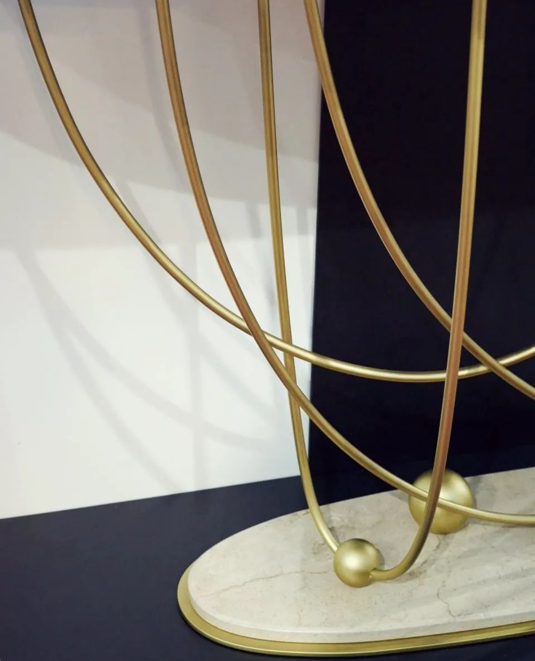 Коллекция Yuna - это дизайнерская мебель в современном стиле. Результат коллаборации дизайнера Ильи Легчатова и кузнечной мастерской "Новый стиль". Создаем мебель и предметы интерьера на собственном производстве. Воплощая в жизнь свои идеи и проекты дизайнеров. Консоль выполнена из стали с покраской под латунь. В качестве столешницы и основания использован мрамор.