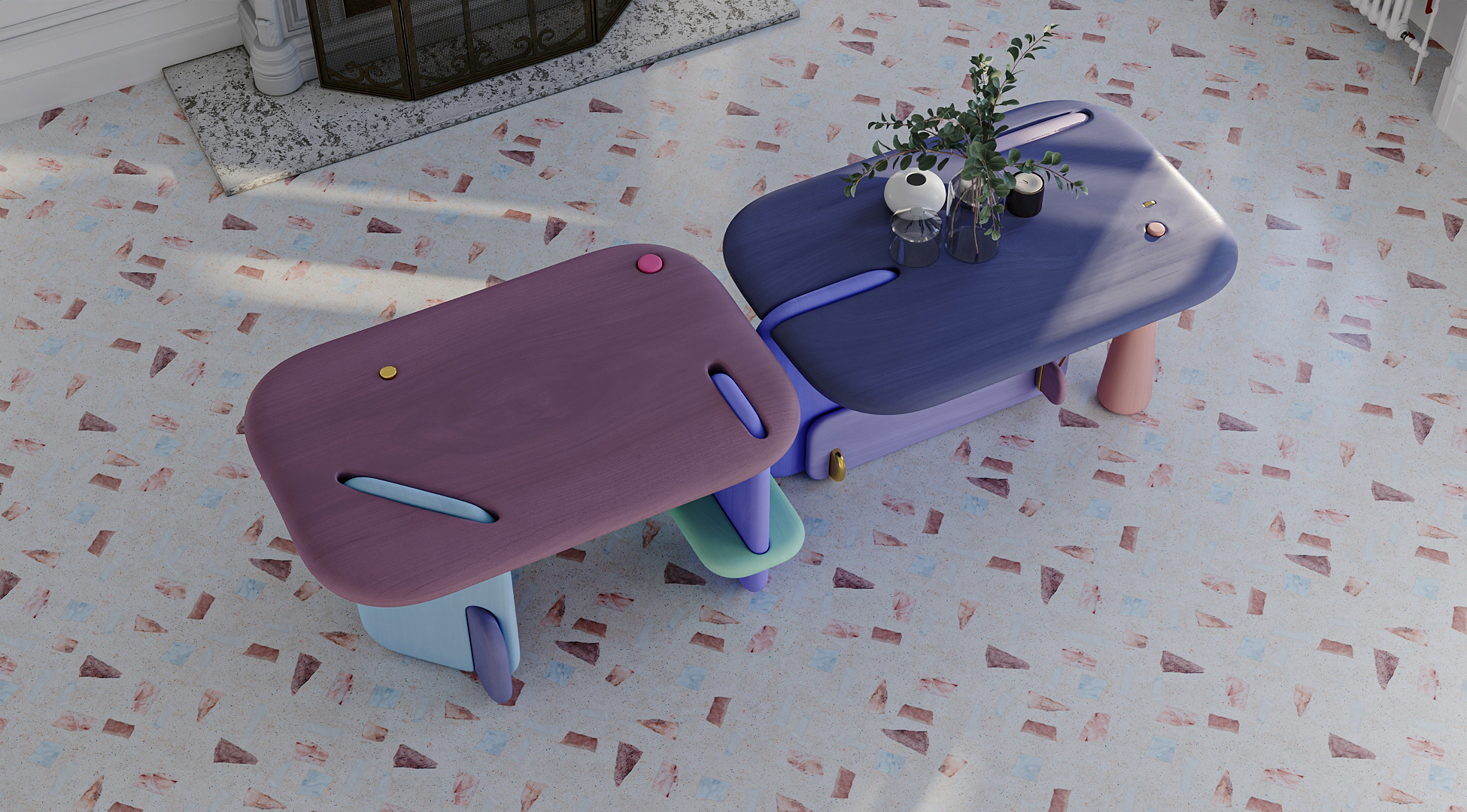 Стол имитирует элементы детских игрушек, а именно конструктор. Эти столы собираются одним талантливым плотником с планеты U2BeBetter. Но он не только плотник, он также строит целые дома из объектов, которые находит около своего жилища.