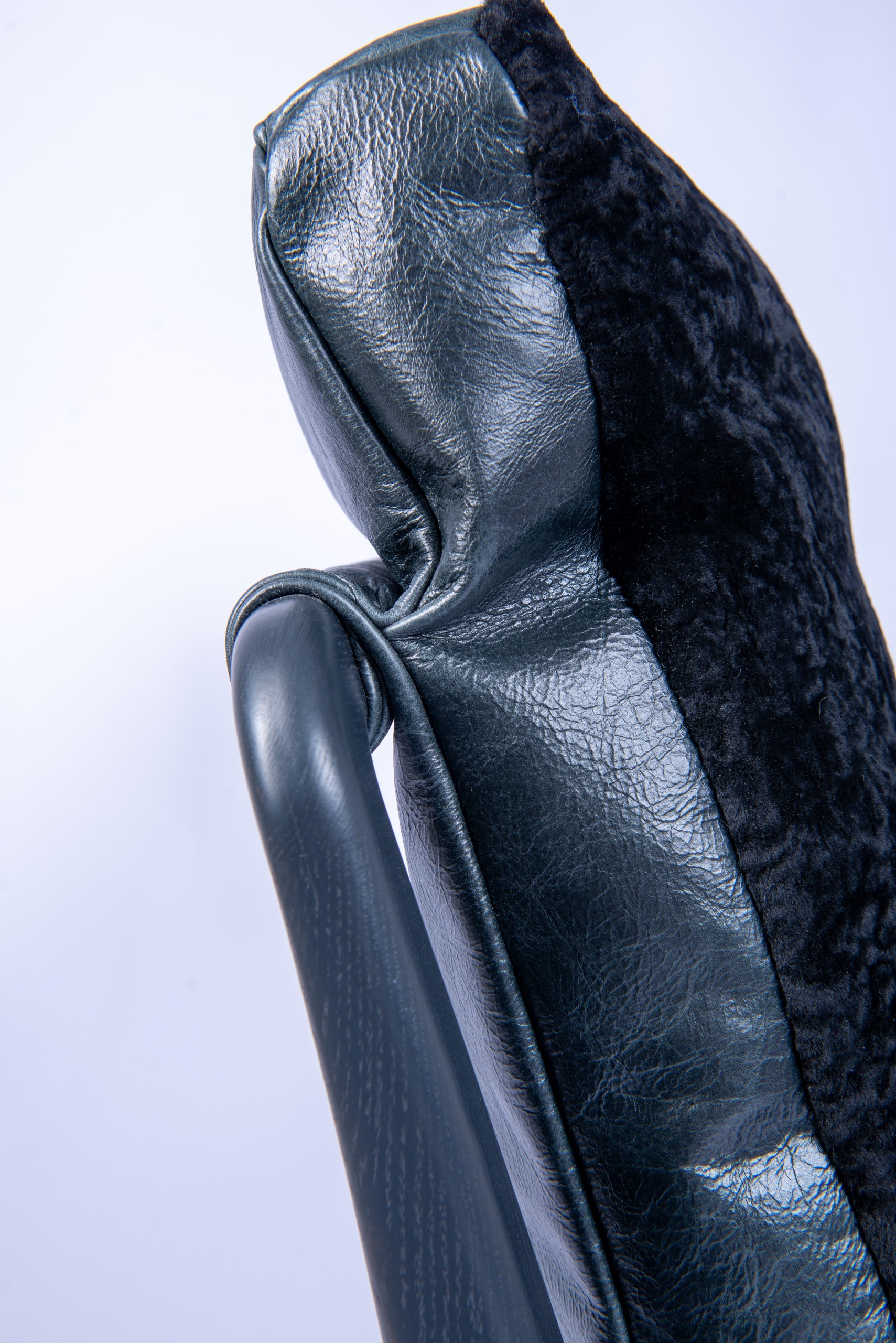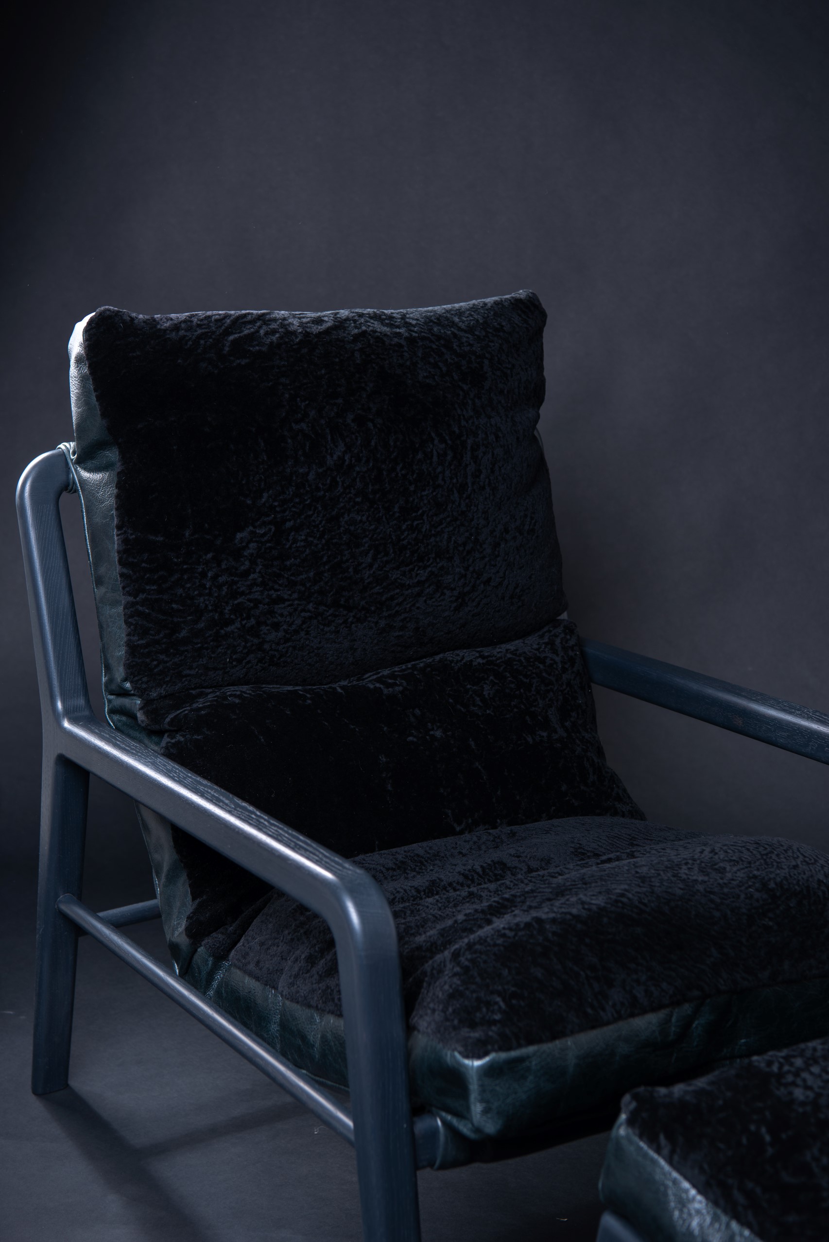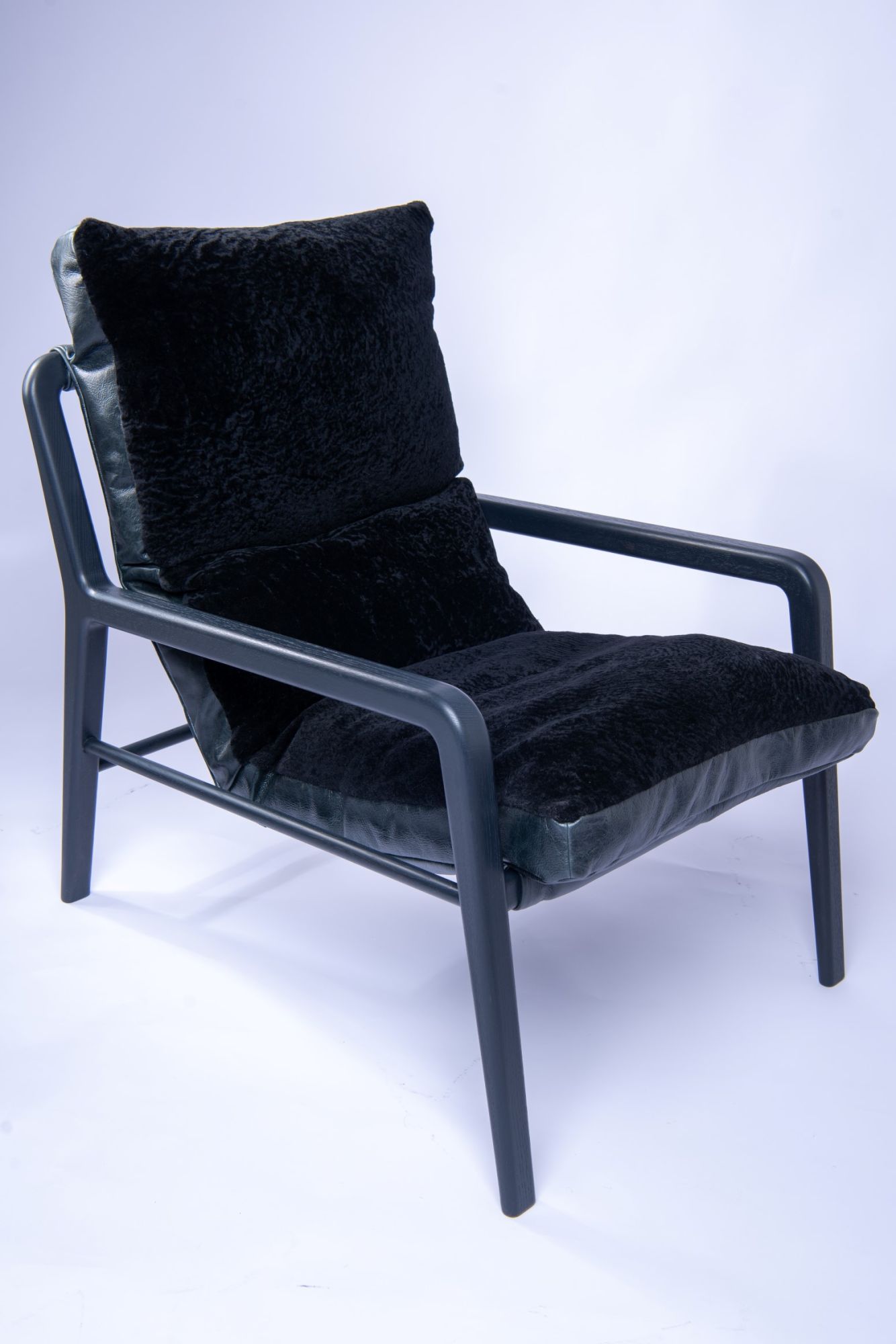 “The Nube chair is like being on a feather bed: soft, airy cushions made of leather and fur envelop you, creating maximum comfort and relaxation. The filling density of each of the three pillows can be changed to suit your needs.”