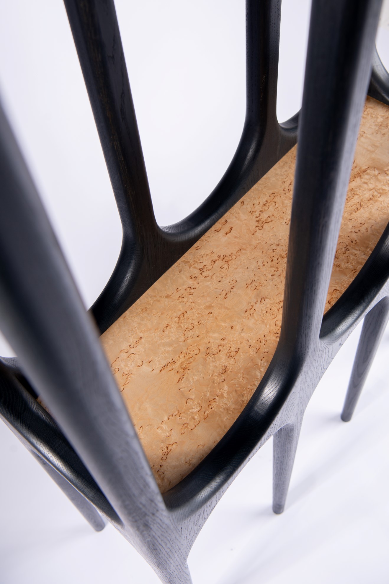 The second is the use of traditional carpentry material oak wood, as a symbol of strength, reliability and durability. The use of predominantly handmade work by a master who realized his idea refers to the artisanal, authentic history of the creation of the rack.