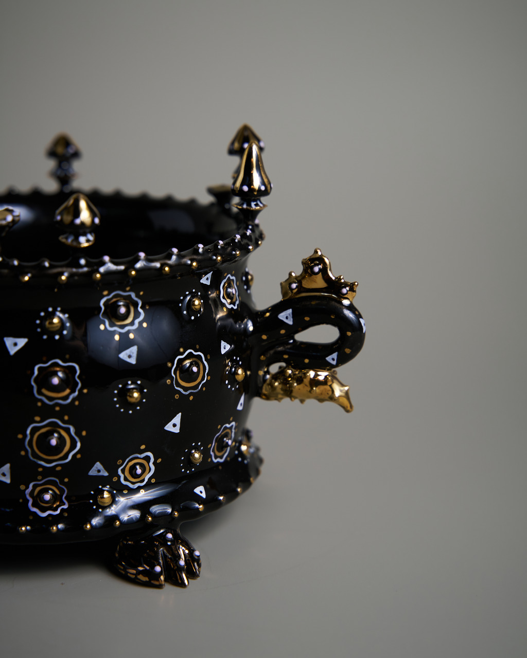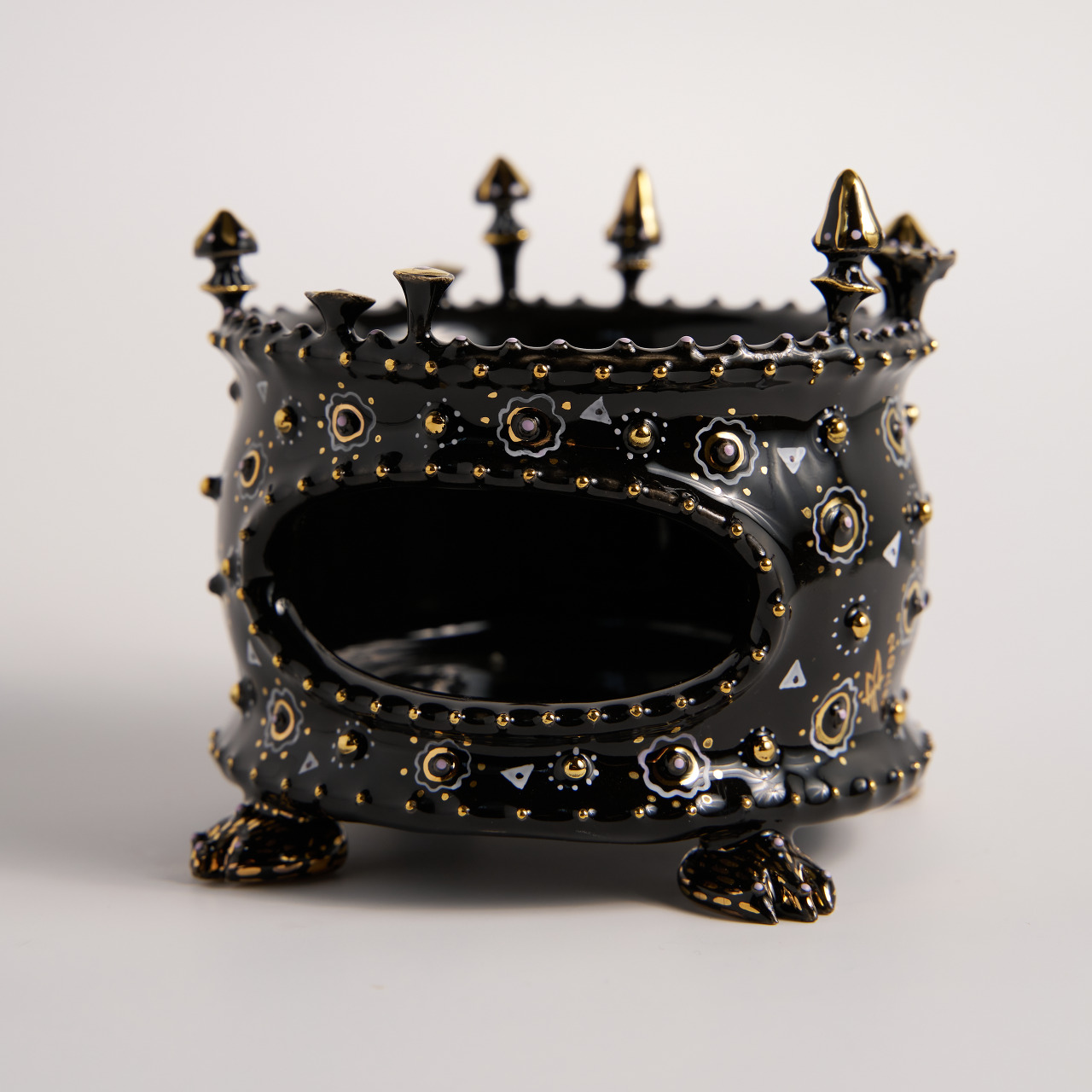 Несколько лет назад Никита Макаров интуитивно предугадал возрождение интереса к декоративно-прикладному искусству — керамика стала для него новой художественной формой, в которой он умело сталкивает разные эпохи и культуры. Уже спустя 1,5 года с момента создания первой скульптуры Макаров основал свой собственный бренд Makarov Ceramics. Его миссия – возрождение традиций прикладного и декоративного ремесла, актуализация данного направления в искусстве и возвращение внимания к исконным канонам красоты — органичной, понятной и безусловной. В своих работах основатель Никита Макаров обращается к теме сказочных сюжетов – жанру, который на протяжении веков неизменно вдохновляет людей искусства и моды на творчество. Коллекция «Таинственный лес» — волшебный мир мифогенных существ и образов, выполненный в керамике и декорированный надглазурной росписью, золотом, платиной и кракле.