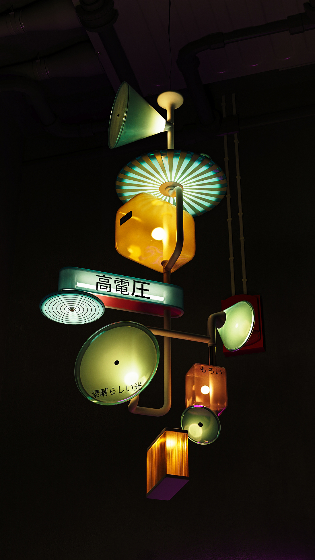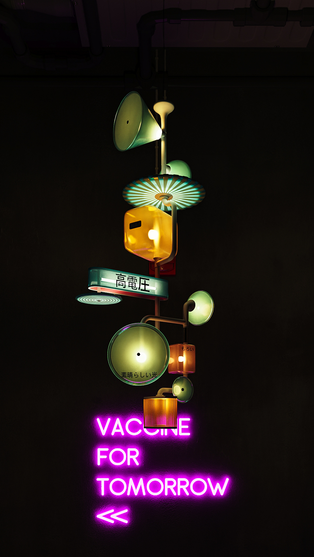 Лампа «Welcome to happiness» воплощает образ одного из растений с Планеты Путей, символизируя жизненный путь, по которому мы идем. Прогуливаясь по ночным улицам мегаполиса, мы попадаем в неоновый лабиринт заведений. Яркие, пульсирующие огни направляют нас к нашим желаниям.