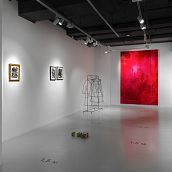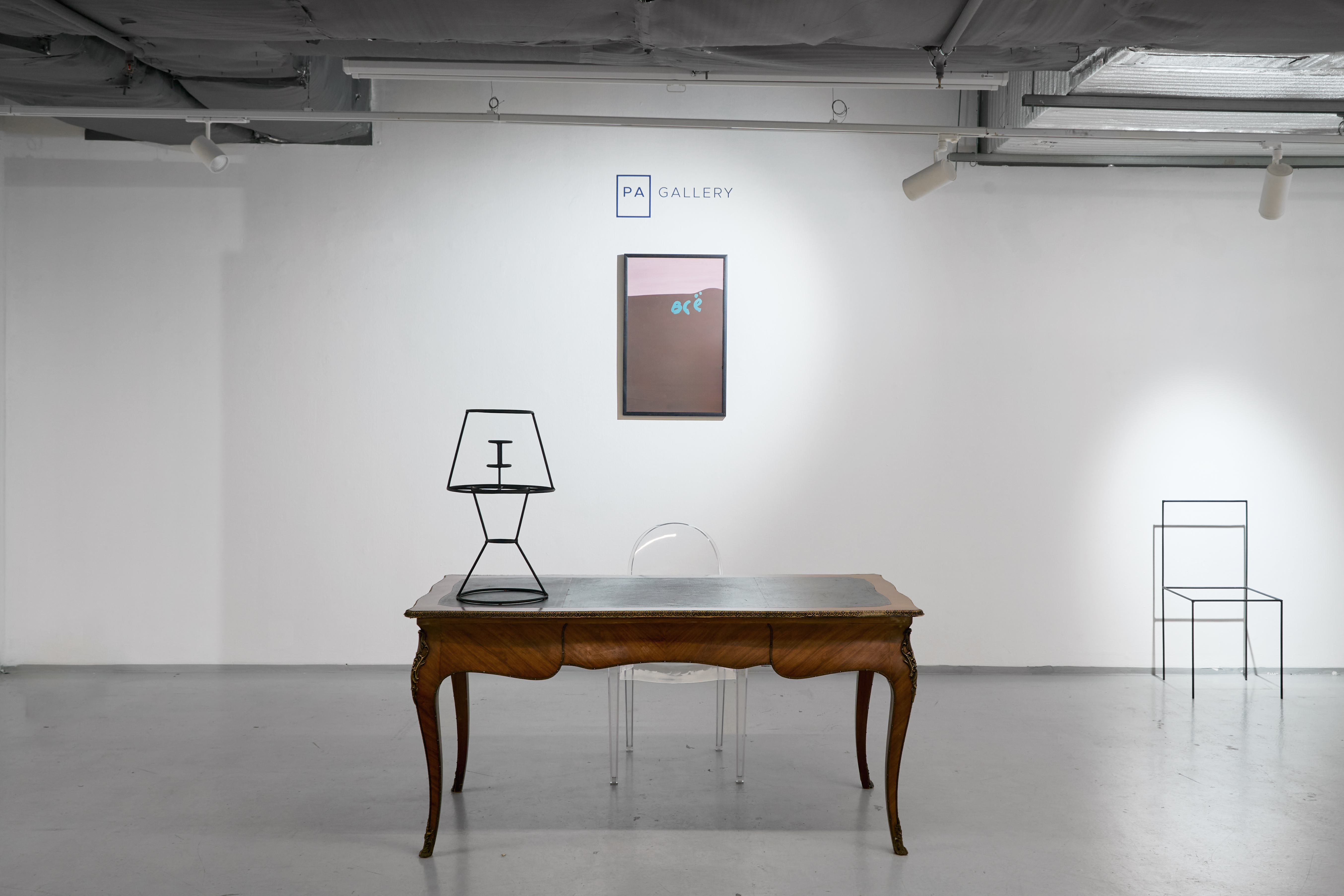 «Кабинет галериста» представляет не только работы всех авторов, с которыми работает PA Gallery, но и частные собрания ее владельцев. Будучи собранными вместе, они начинают отражаться друг в друге. Каркасные металлические конструкции Ани Жёлудь, сводящие повседневные предметы – гладильную доску, пианино, торшер – к контурам их границ, замыкающих пустоту, вступают в диалог с танцующими изогнутыми траекториями Евгения Михнова-Войтенко, образованными выдавленной из тюбиков краской. Энергичная графика Евгения Чубарова, в которой «пузырящиеся» телесные объемы превращаются в беспредметные монохромы, занимая целую стену в духе типичной для кабинета редкостей шпалерной развески, отражается в монументальной живописи Алисы Гореловой, сопоставляющей физиологию и мимесис в ощущении жизни как материального потока. Зеркальные полотна Антона Конюхова, хранящие на себе травмирующие жесты-удары, рифмуются с поверхностями Владимира Трямкина, выстроенными как шероховатая дырявая терка – оптическая ловушка для «застревающего» в ней зрительского взгляда. Тотально гладкий, лишенный шероховатостей и нестыковок предметного мира пейзаж Олега Хвостова встречает своих антиподов – поверхности Андрея Волкова, чья одухотворенная красочность подобна океанической стихии, или, с другой стороны, экспрессивные мазки Владислава Зубарева. Наконец, кирпичи, плитки и книги Андрея Сяйлева, имитирующие сбои в восприятии, или сюрреалистичные фарфоровые объекты Анны Казьминой сами по себе выглядят как «диковинки» в лучших традициях кабинета чудес.