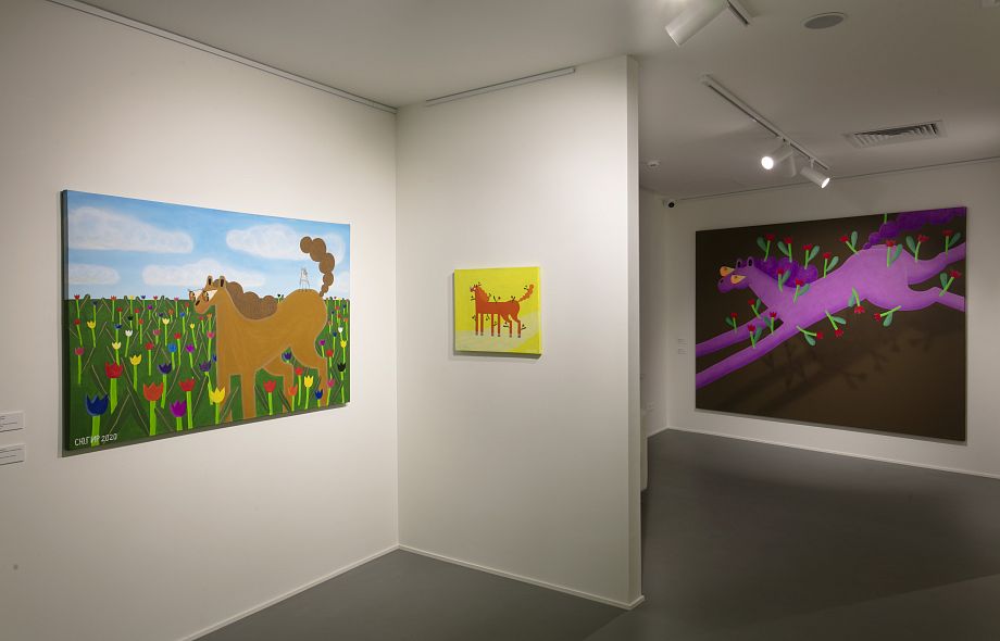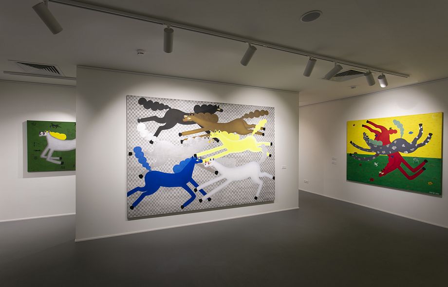 Кони и тюльпаны – основные образы в творчестве Сюгира Булуктаева, они связаны с Калмыкией, родиной художника. Эти образы проступили сами собой в 2018 году, когда художник долгое время жил в Европе, они оказались родными и приятными, Сюгиру просто хотелось их рисовать. В традиционной культуре калмыков конь занимает главное место, это сложилось из кочевого образа жизни в бескрайних степях. В эпосе монголоязычных и тюркоязычных народов существует особый жанр «магтал коню» («хвала коню») – это воспевание его красоты и достоинств . Кони при этом обладают невероятной мощью и чудесными свойствами, как способностью летать и говорить. Главным примером здесь может быть калмыцкий героический эпос «Джангар» XV века, который называют «эпосом прославленных всадников».