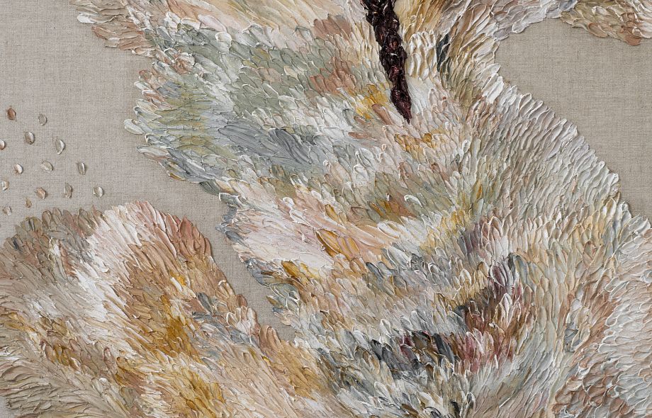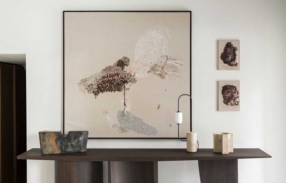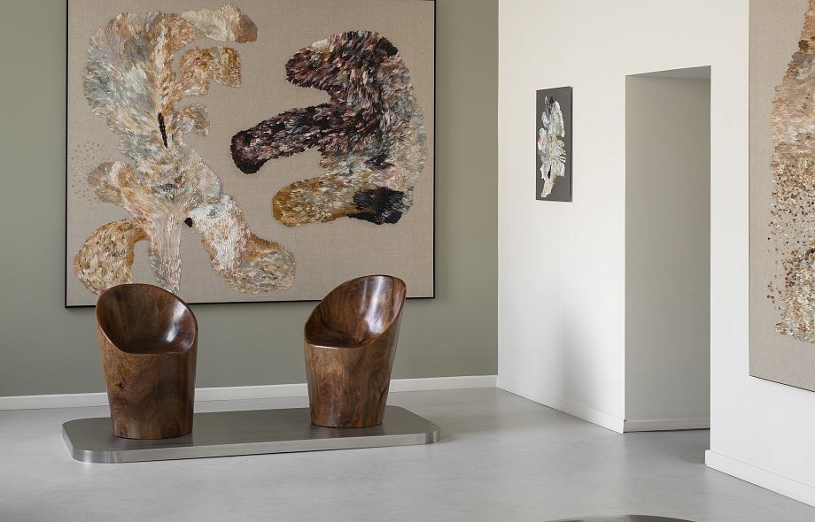 Креслу Namoradeira посвящена вторая центральная работа экспозиции — живописное полотно Zanine Даниэлы Бусарелло, которое она создала как оммаж творчеству Калдаса. Для художницы и архитектора Даниэлы Бусарелло природа и гений места значат не меньше. Как и он, Даниэла родилась в Бразилии и выросла в окружении вечных деревьев тропического леса. Ее работы, посвященные Амазонии, показывают мощь, силу и вместе с тем — хрупкость этой удивительной экосистемы. В основе ее подхода — размышления о связи всего живого, природной и необъяснимой, пронизывающей все вокруг. На выставке представлены работы художницы из серий Inner Landscape, Elapsed Time, Hommage À Courbet, Mar Verde и Anima Mundi, созданные в период с 2017 по 2024 год.