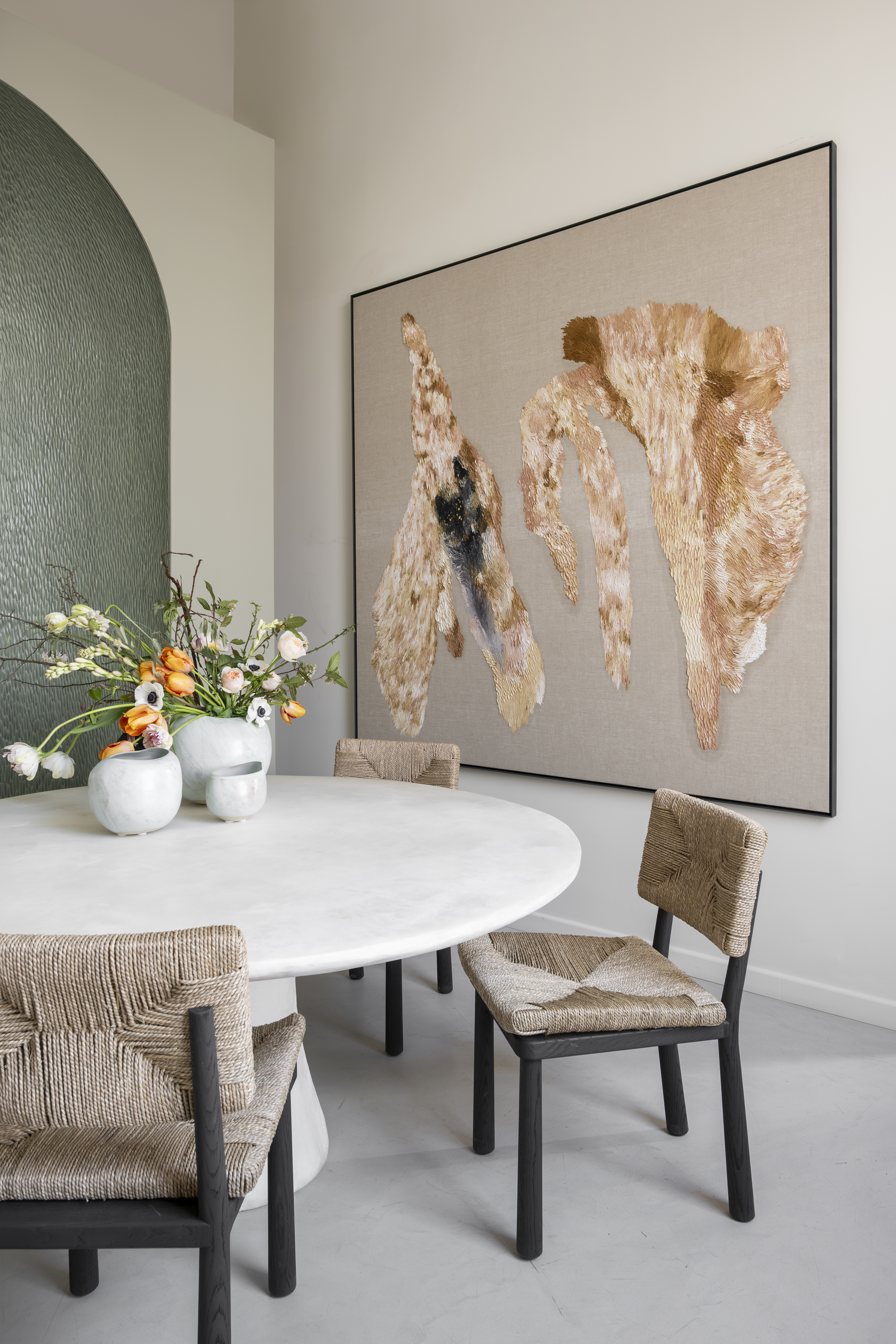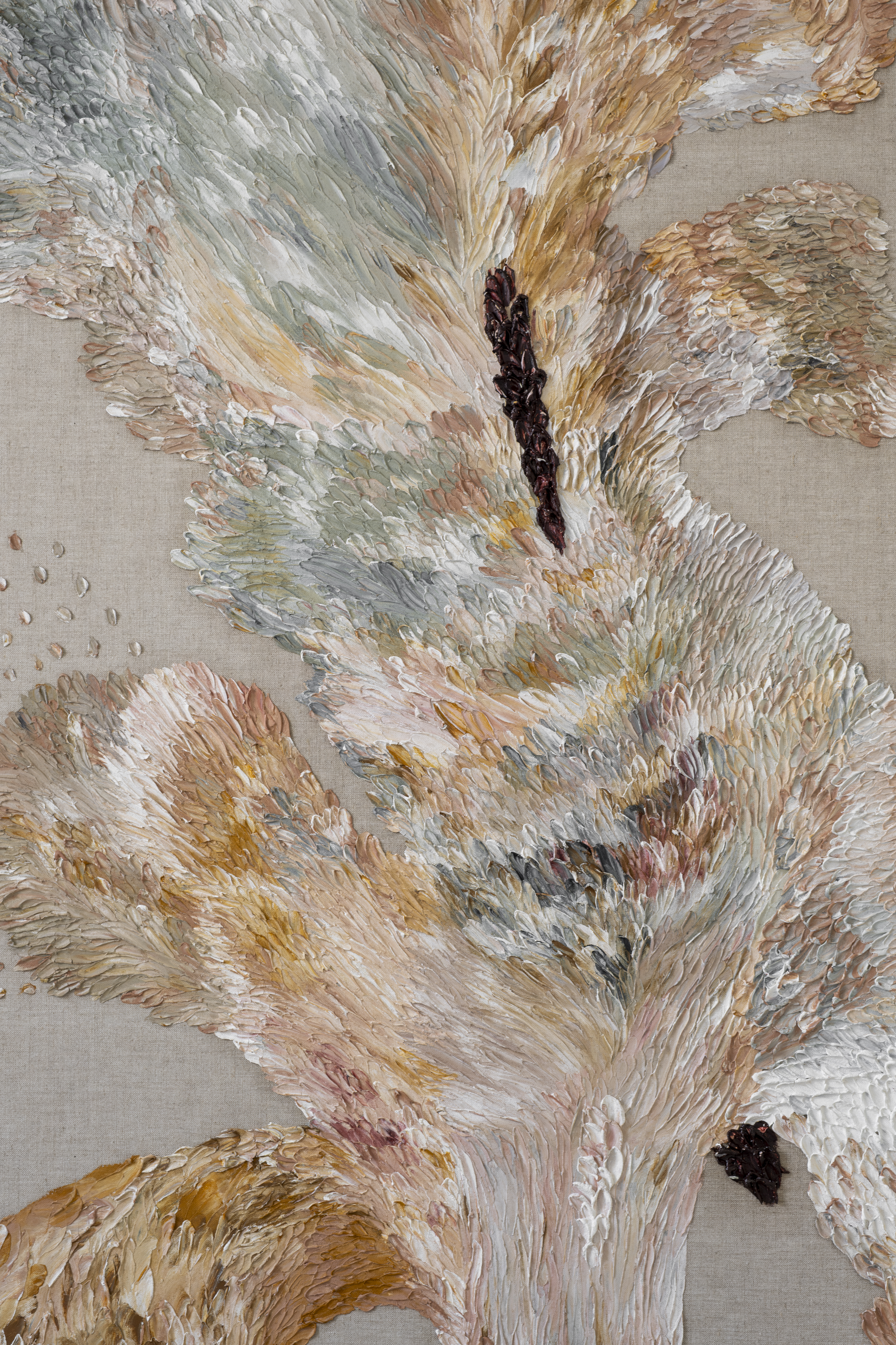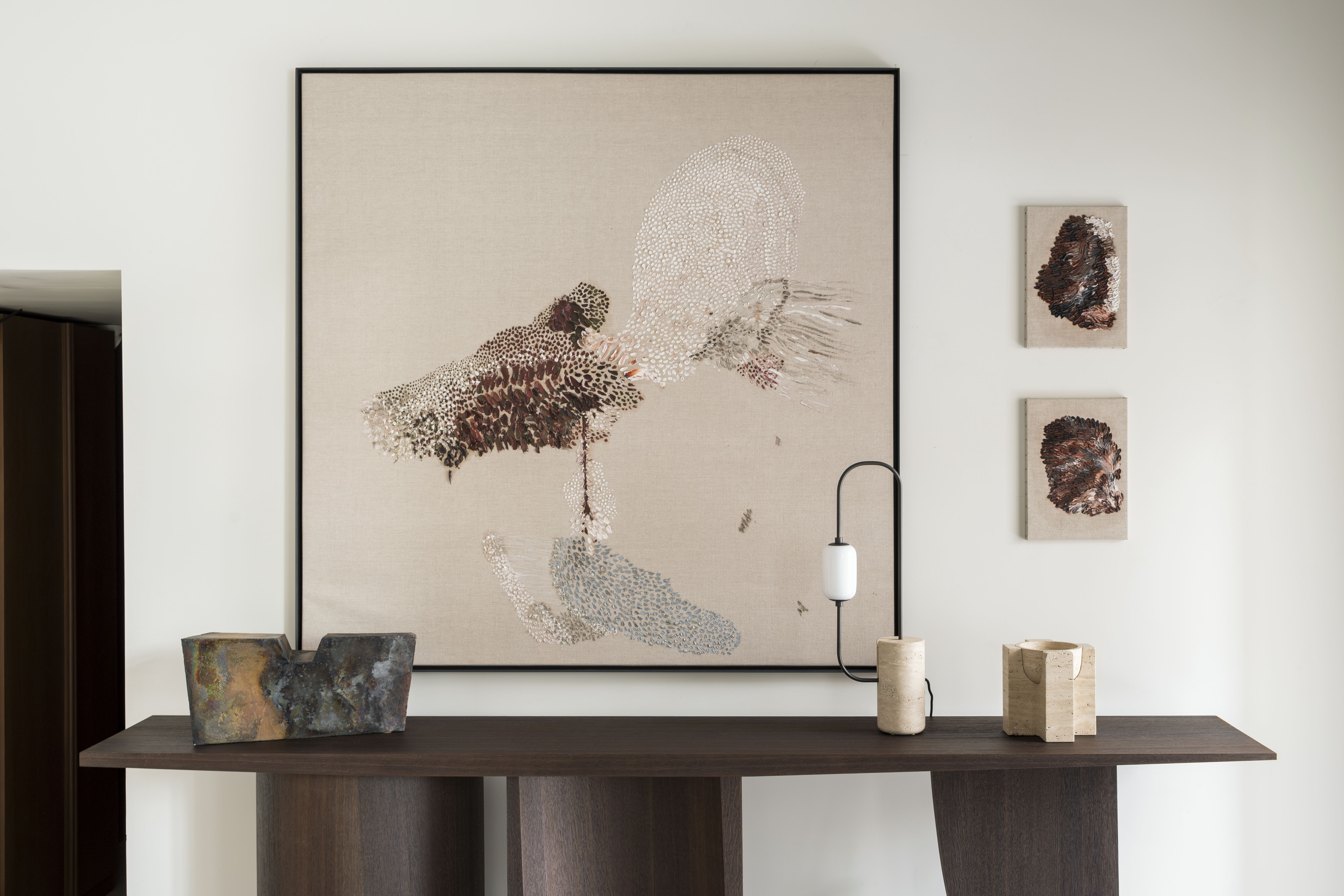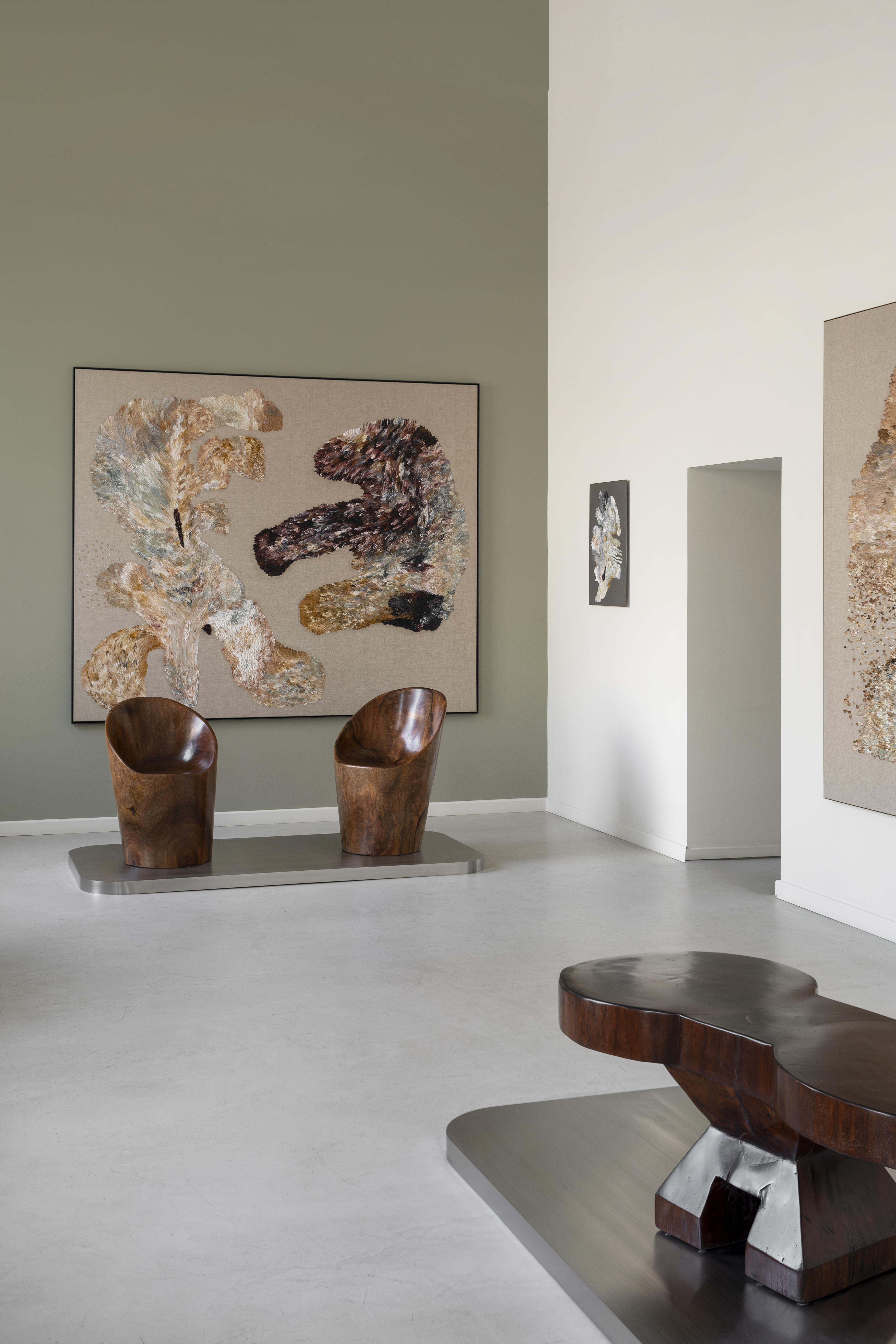 Креслу Namoradeira посвящена вторая центральная работа экспозиции — живописное полотно Zanine Даниэлы Бусарелло, которое она создала как оммаж творчеству Калдаса. Для художницы и архитектора Даниэлы Бусарелло природа и гений места значат не меньше. Как и он, Даниэла родилась в Бразилии и выросла в окружении вечных деревьев тропического леса. Ее работы, посвященные Амазонии, показывают мощь, силу и вместе с тем — хрупкость этой удивительной экосистемы. В основе ее подхода — размышления о связи всего живого, природной и необъяснимой, пронизывающей все вокруг. На выставке представлены работы художницы из серий Inner Landscape, Elapsed Time, Hommage À Courbet, Mar Verde и Anima Mundi, созданные в период с 2017 по 2024 год.