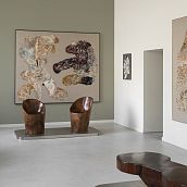 Занин Калдас к концу 1960-х годов вернулся к изготовлению предметов вручную в единственном экземпляре. Его «Мебель протеста», помимо мощной концептуальной составляющей, содержит и квинтэссенцию бразильского культурного кода: образность особой (дикой, граничащей с рустикальностью) барочности, которая отсылает и к деревянным статуям Алейжадинью со следами резца скульптора, и к искренности форм первых предметов архитекторов-модернистов. Та же образность, видоизмененная эстетикой XXI века — утонченная, текучая, но все такая же чуткая к зову девственного леса — есть и в работах Даниэлы Бусарелло. Выставка «MAR DE AMOR» представляет дуэт творцов, чьи идеи, воплощенные в предметах искусства, взаимодействуют сразу на многих уровнях, главный из которых, на мой взгляд, — архетипический.