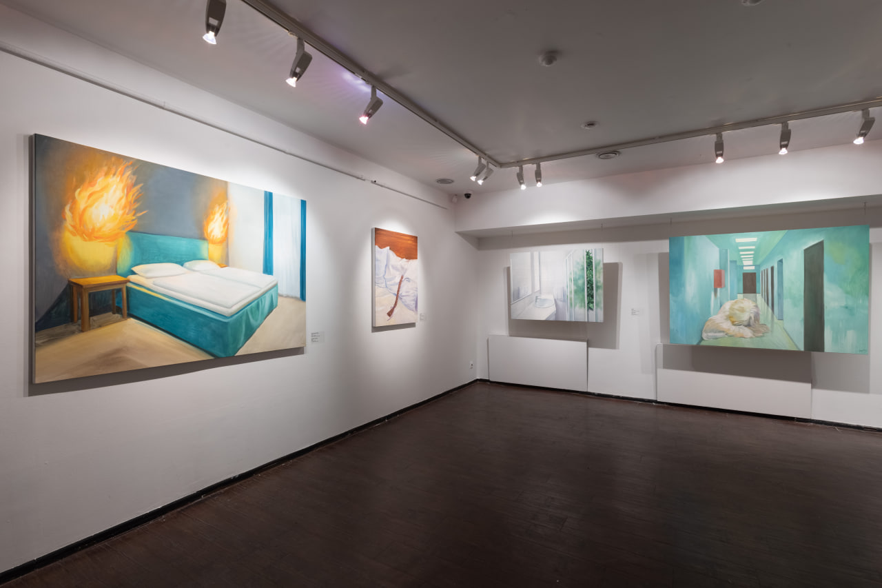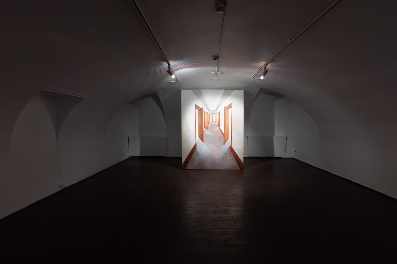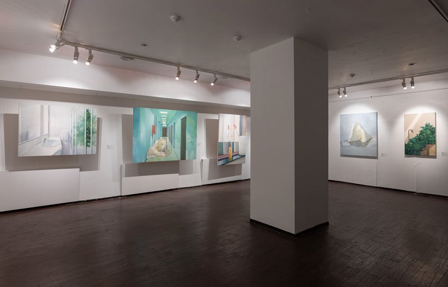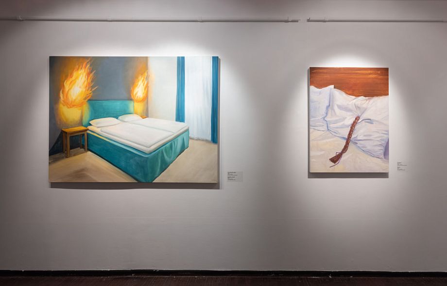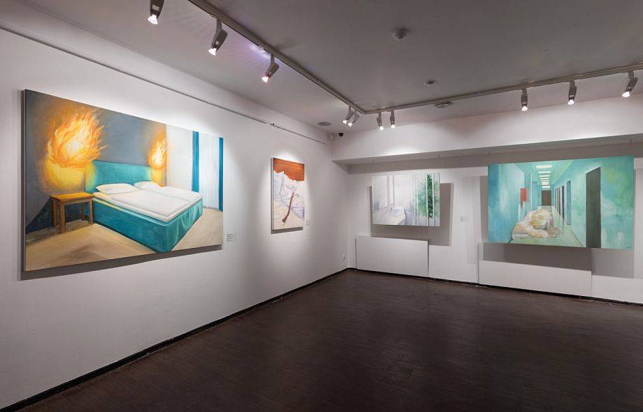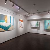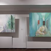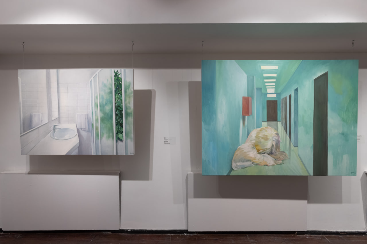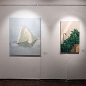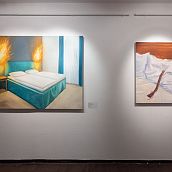 Проект «Свидетель» Дарьи Барыбиной — это серия из 9 работ, объединенных темой тревожного ожидания и неопределенности. Все живописные полотна лишены героя, так как он явно находится за пределами холста, заглядывая в него и пытаясь понять, что происходит. Молчаливая метафизика самых обыкновенных, как кажется на первый взгляд, предметов отсылает нас к «пустынным» работам американского модерниста Эдварда Хоппера, чьи герои всегда будто лишены жизни и служат лишь дополнением к пейзажу. Привычный утренний натюрморт с раковиной оборачивается едва ли не триллером, а коса на подушке свидетельствует о чьем-то резком пробуждении. Стандартный номер в отеле напоминает декорации к тревожному фильму, а существо, обнаруженное в холле, и вовсе далеко от реальности. Каждый посетитель будет пытаться разгадать, что за секрет хранят пустые комнаты и коридоры, случайно или намеренно оставленные две пары обуви — разгадка будет зависеть только от вашего воображения.