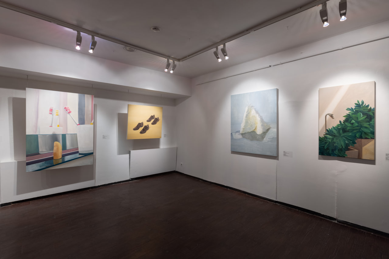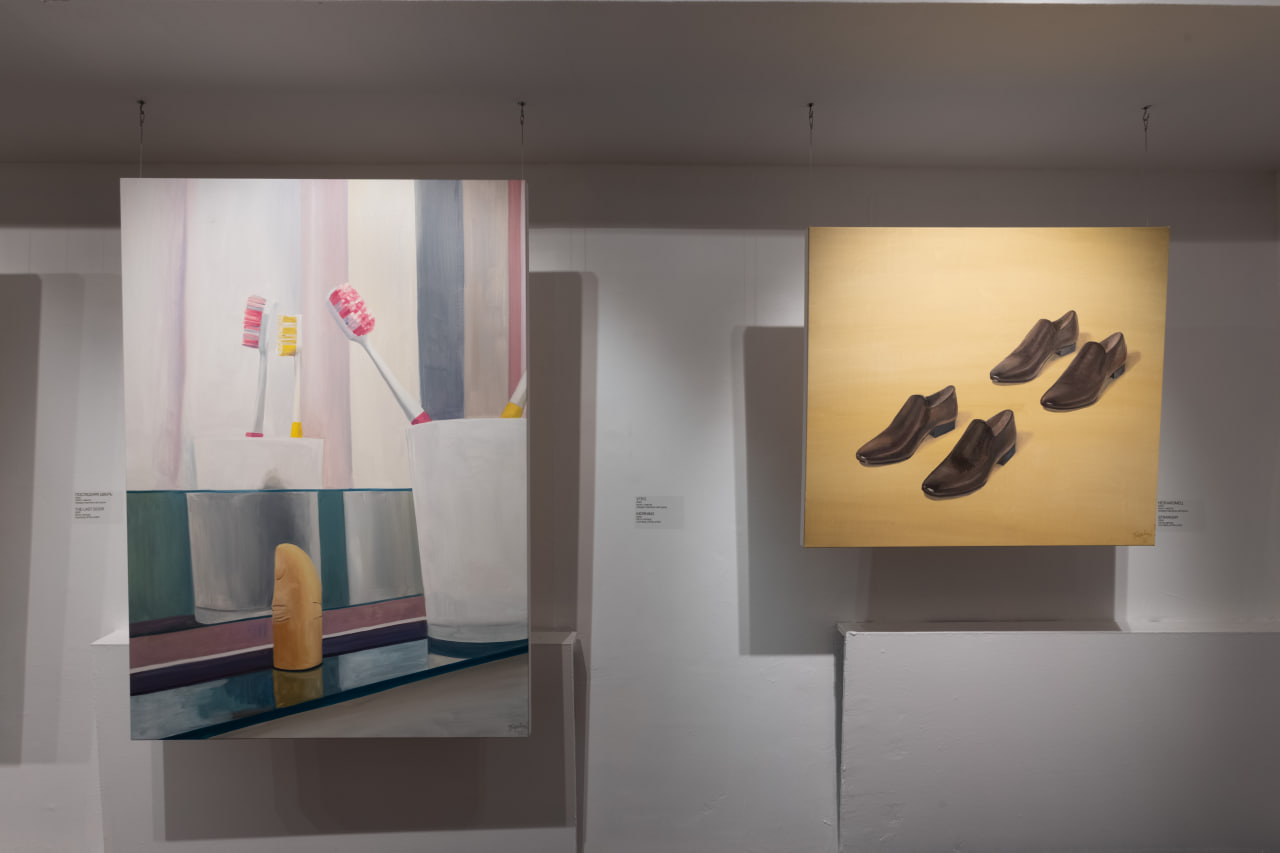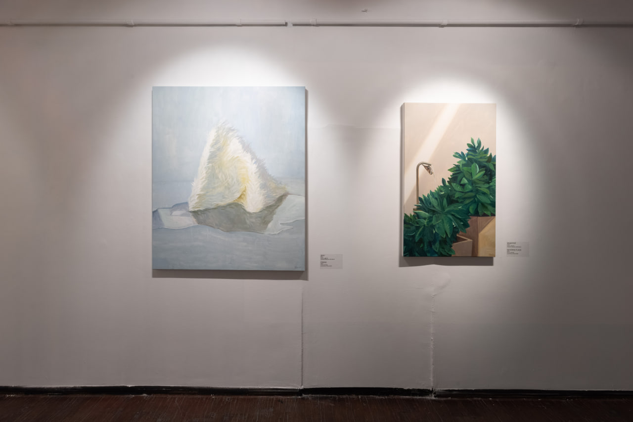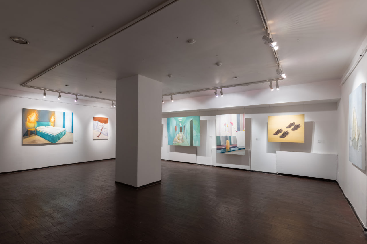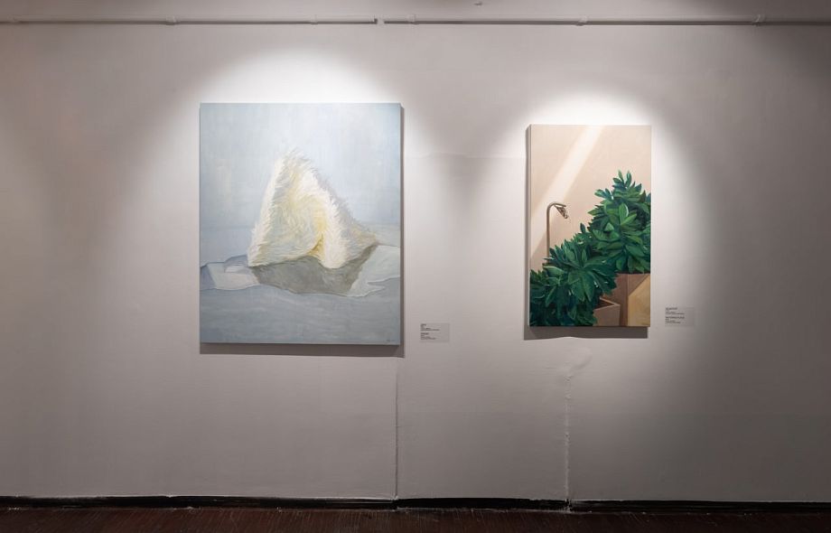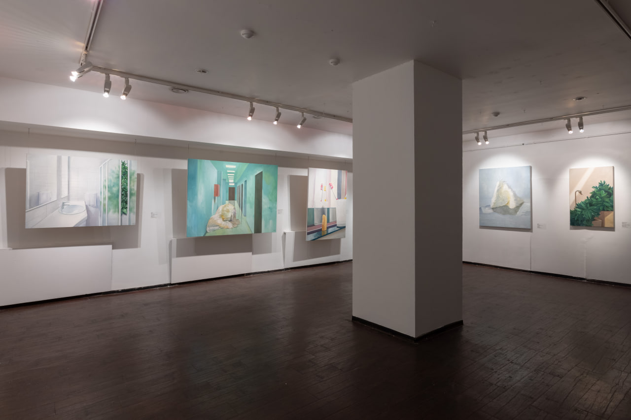 Проект «Свидетель» Дарьи Барыбиной — это серия из 9 работ, объединенных темой тревожного ожидания и неопределенности. Все живописные полотна лишены героя, так как он явно находится за пределами холста, заглядывая в него и пытаясь понять, что происходит. Молчаливая метафизика самых обыкновенных, как кажется на первый взгляд, предметов отсылает нас к «пустынным» работам американского модерниста Эдварда Хоппера, чьи герои всегда будто лишены жизни и служат лишь дополнением к пейзажу. Привычный утренний натюрморт с раковиной оборачивается едва ли не триллером, а коса на подушке свидетельствует о чьем-то резком пробуждении. Стандартный номер в отеле напоминает декорации к тревожному фильму, а существо, обнаруженное в холле, и вовсе далеко от реальности. Каждый посетитель будет пытаться разгадать, что за секрет хранят пустые комнаты и коридоры, случайно или намеренно оставленные две пары обуви — разгадка будет зависеть только от вашего воображения.