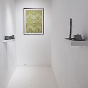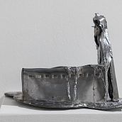 Новые объекты Булныгина — как археологические находки, затаившиеся в своем ледяном молчании. Это застывший мир сюрреалистических предметов, которые избегают быть пойманными и поддаются лишь простому перечислению. Вот редкие приметы оттепели - плавящиеся свинцовые строения, образы отжившей утилитарной архитектуры. Там - керамический попугайчик, накрытый тряпкой цвета хаки, замер в неясном ожидании. Здесь - двуглавый поросенок балансирует на антикварной подставке, бросая вызов всем законам физики и логики.