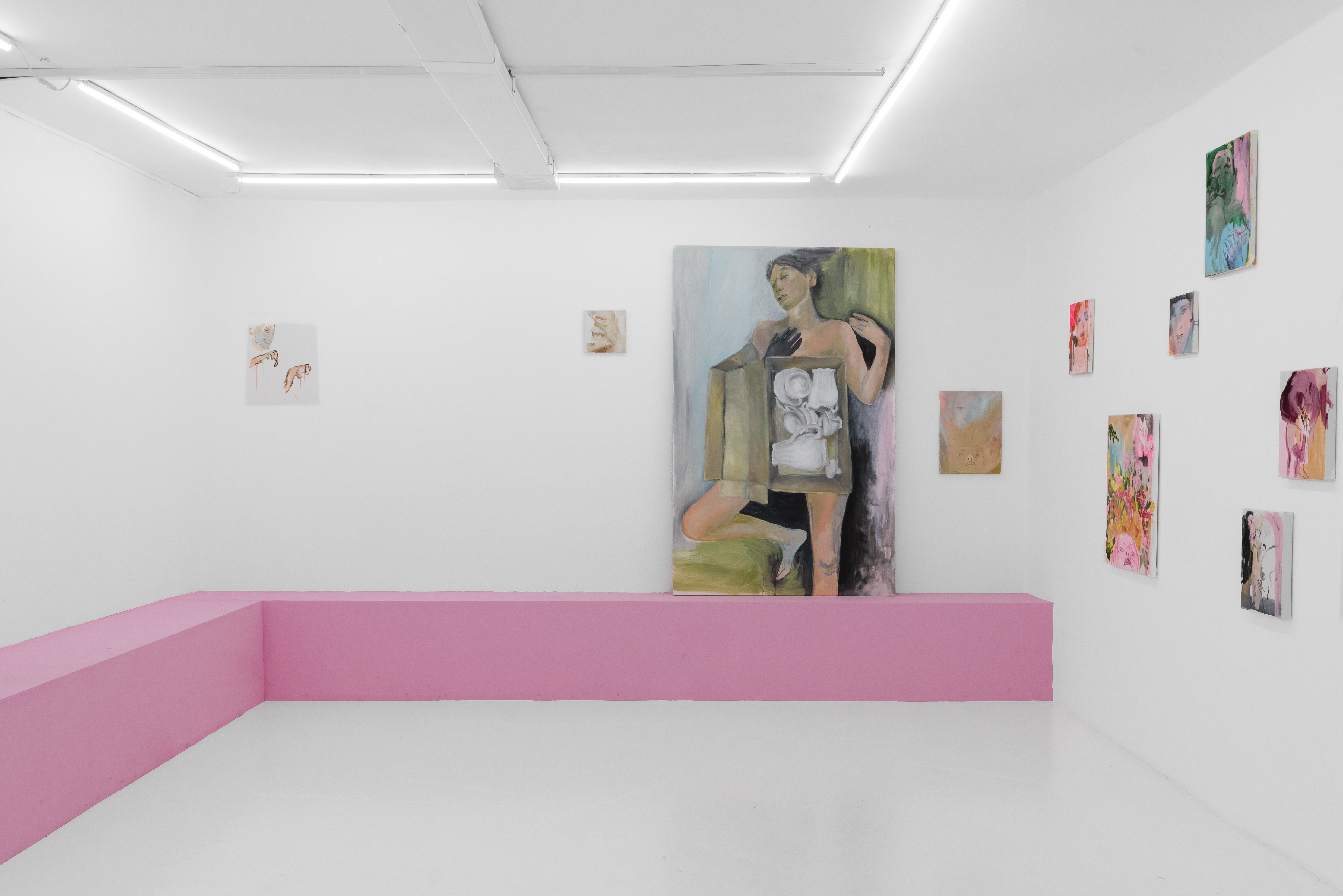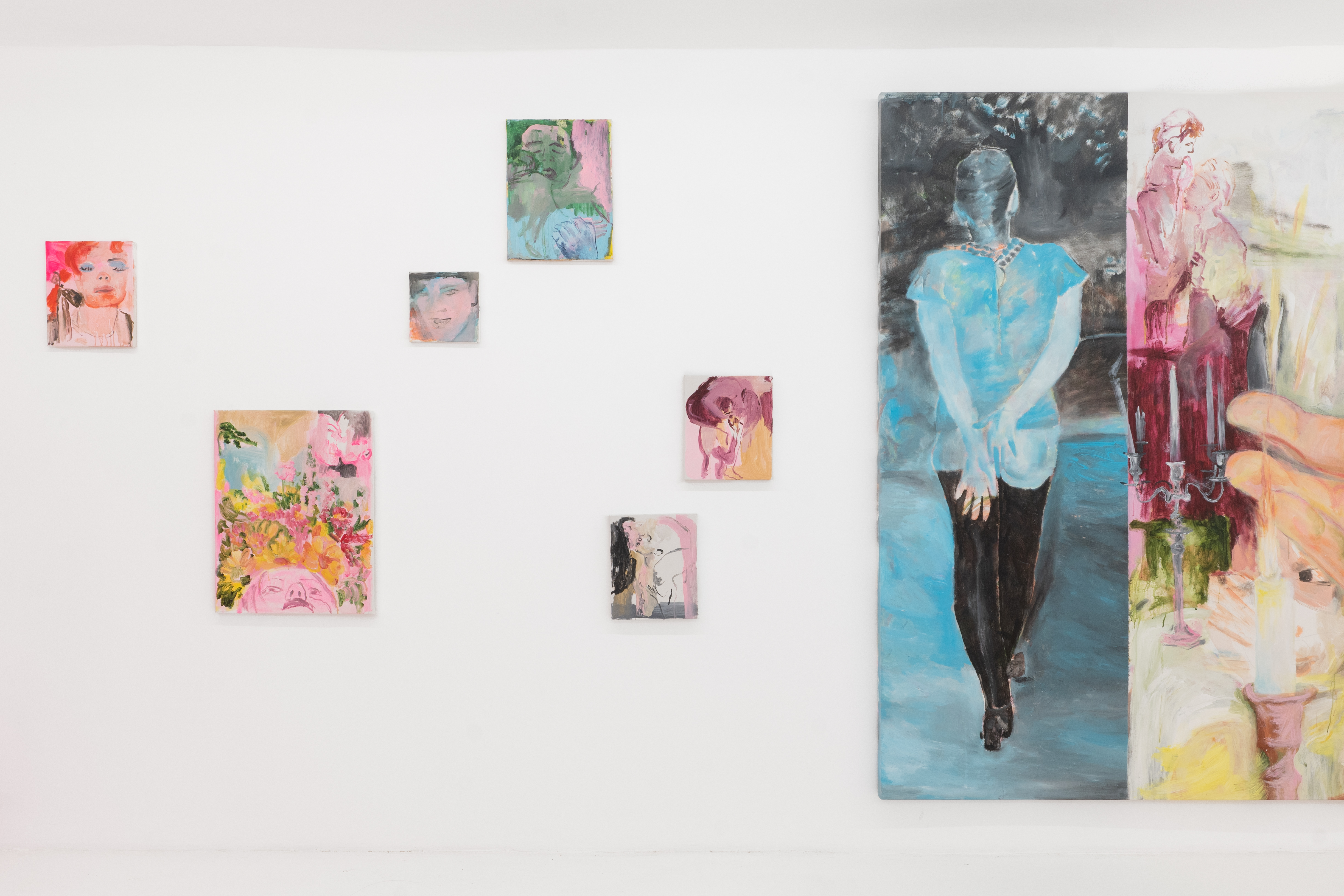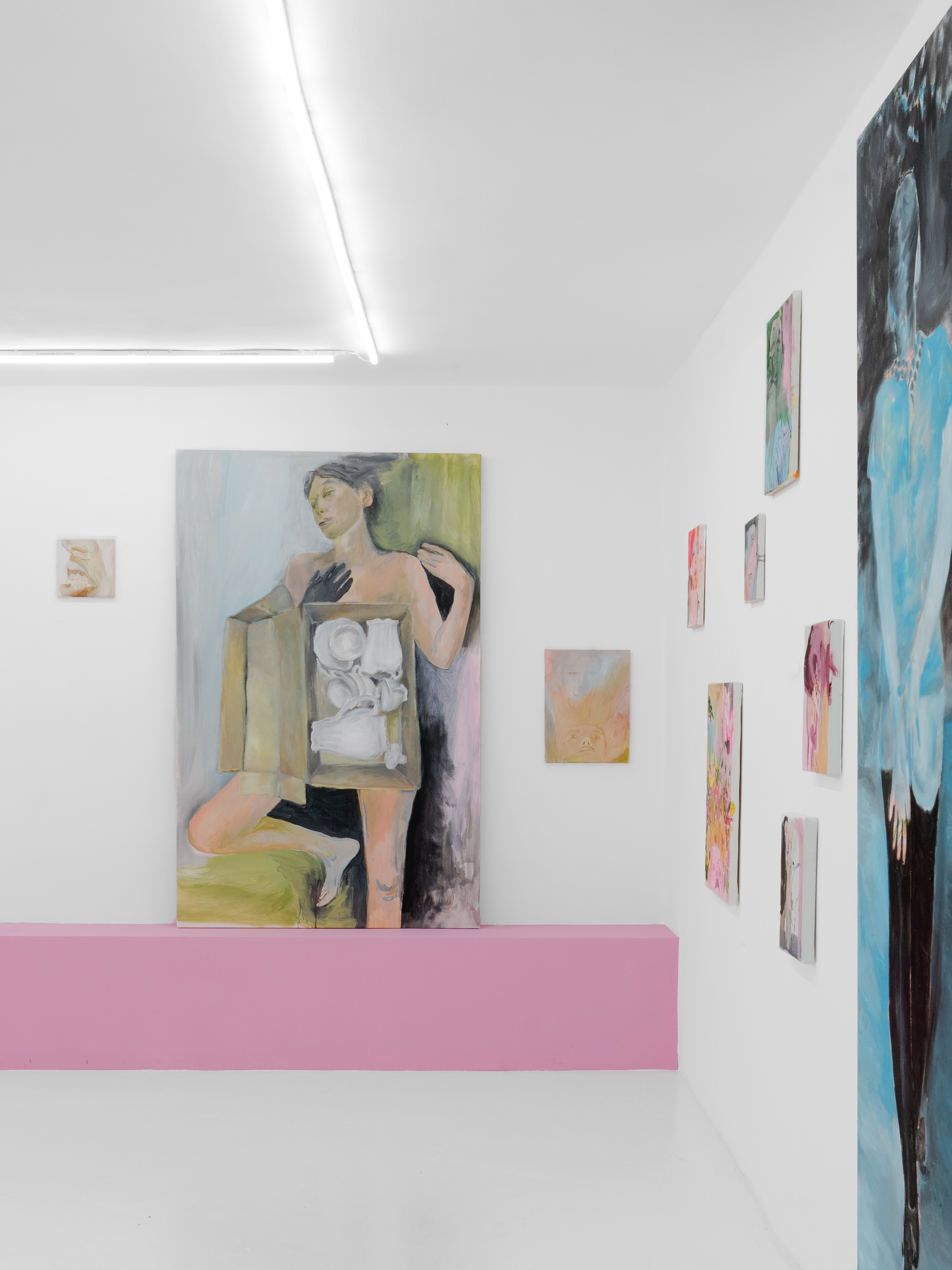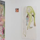 В центре экспозиции большой холст Necessary Rebellion, соединяющий два изображения словно на монтажном столе: образ повернутой спиной к зрителю девушки в неоновых синих оттенках и рука протягивающая яйцо, как символ целостности и начала новой жизни. Разобщенные осколки тел обрамляют исполинскую ладонь с яйцом, словно вылепленную по цвету и форме из тревожных композиций, перетекающих в мясистую абстракцию. Очаровывают своей силой и небольшие работы, мозаично разбросанные в пространстве галереи. Настроение серии вводит в замешательство, сочетая уязвимость с пароксизмом кассетных хорроров 80х.