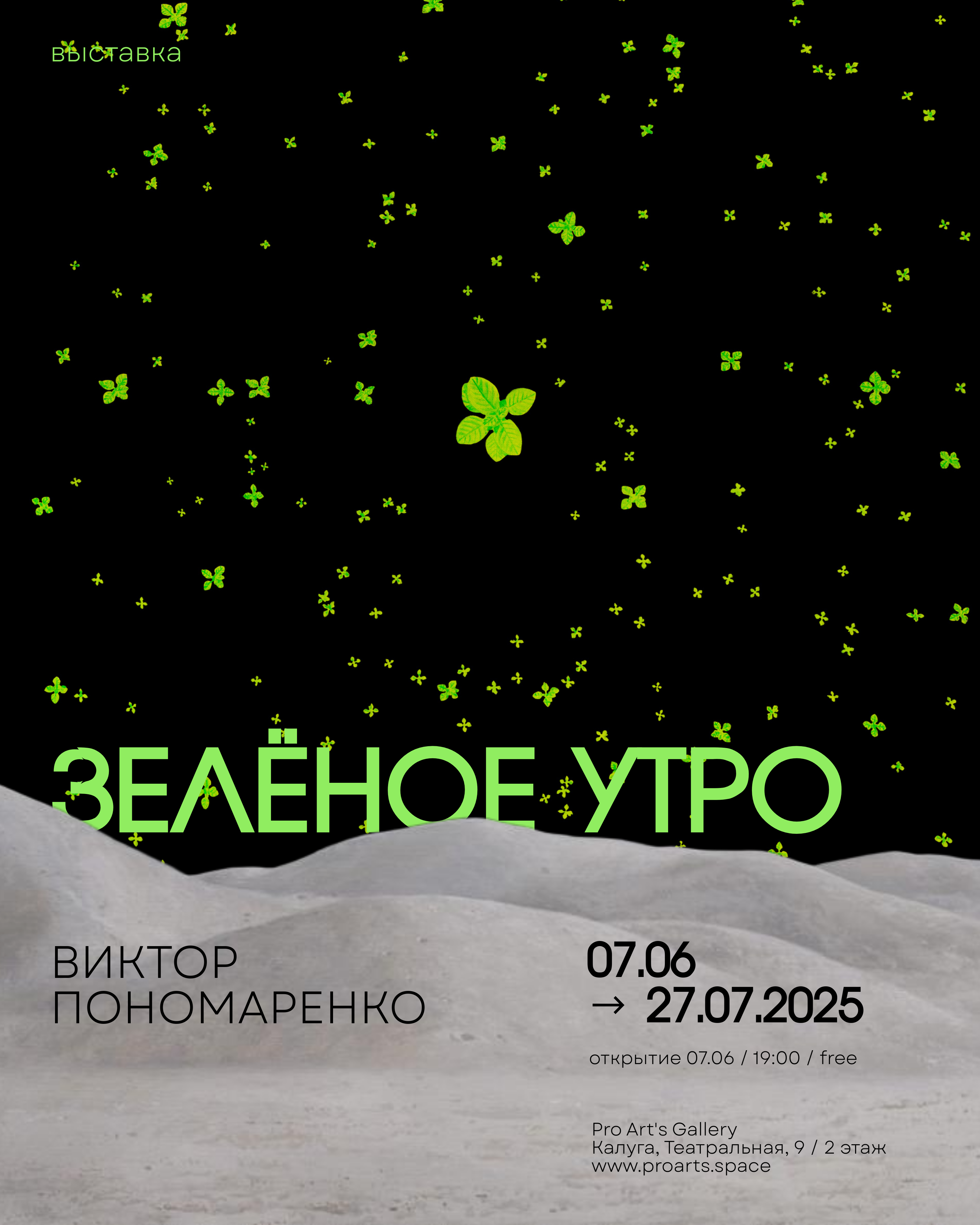 Выставка предлагает зрителю поэтическое путешествие в новый мир, находящийся на стыке научной фантастики и философских размышлений Виктора Пономаренко о будущем освоения космоса, где мертвая космическая тишина встречает пробуждающуюся жизнь. В проекте «Зелёное утро» безжизненные ландшафты далеких планет становятся символом утраченных иллюзий и пережитых разочарований. Художник ищет пути к исцелению, возделывая сад на этой бесплодной «земле». Ростки новой жизни, пробивающиеся в, казалось бы, самых безнадежных условиях, становятся мощной метафорой силы духа и способности к возрождению.