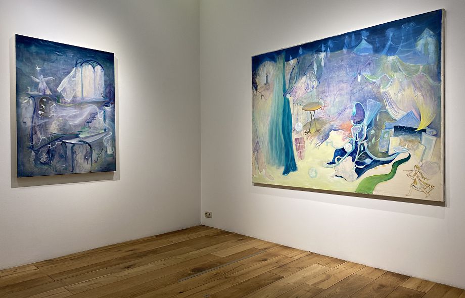 Композиции Дзохоэ - интерьеры, напоминающие детские комнаты. Часто в центре их кроватка или манеж, разросшийся до размеров ложа, чтобы укрыть уже взрослого, но всё ещё уязвимого героя. Синий тон картин, как воздушная перспектива, возведённая в степень, ведь образы от нас отделяют не километры, а годы и эпохи. Современная живопись, больше не обязанная отражать реальность, находит себя в новой, особенной роли. Её стихия - грань между - сном и явью, знакомым и неизвестным, реальным и невозможным. Ностальгией и навязчивой идеей. Мы, зрители, свободны выбирать оттенки восприятия. Нырять с головой или наблюдать с берега."
