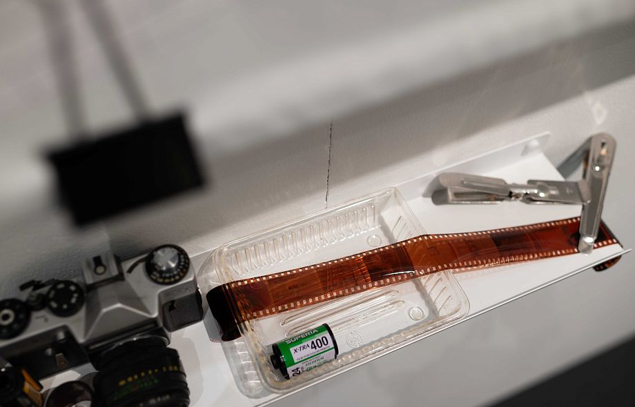 Концепция стенда-фотолаборатории выстраивается вокруг культового фильма Микеланджело Антониони «Фотоувеличение» (1966) и рассуждений об «истине» в кадре. Антониони, сконструировавший собственную историю по мотивам рассказа «Слюни дьявола» (1959) писателя Хулио Кортасара, который, в свою очередь, вдохновившись фильмом Альфреда Хичкока «Окно во двор» (1954), использовал метафору «фотоувеличения» как прием деконструкции реальности. Режиссер приглашает зрителя проследовать за исканиями и умозаключениями героя киноленты — успешного фотографа Томаса, который запечатлевает в парке некую случайную сцену, а затем, увеличивая снимок, все больше теряет связь с увиденным. С каждым последующим увеличением детализация постепенно превращается в шум, и реальность рассыпается. У Кортасара же герой смотрит на изображение и понимает, что реальность уже стала заложником объектива: «Снимок был сделан вовремя, потому что я еще успел понять, что они оба догадались об этом, что смотрят на меня — мальчик встревоженно и вопросительно, а женщина раздраженно, враждебно, это читалось во всем ее теле и в ее лице, которые были бессовестно похищены и стали вечными пленниками обыкновенной фотопленки». Так возведенная в абсолют «истина» кадра больше не выступает объективным свидетельством и превращается в отражение персонального взгляда, но не факта. Сьюзан Сонтаг в своем программном сборнике эссе «О фотографии» (1977) также подмечает это свойство: «Решая, как должен выглядеть снимок, предпочитая один вариант другому, фотографы всегда навязывают свои критерии объекту. Хотя в определенном смысле камера действительно схватывает, а не просто истолковывает реальность, фотография в такой же мере — интерпретация мира, как живопись и рисунок».