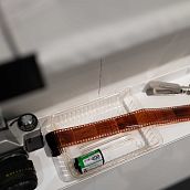 Концепция стенда-фотолаборатории выстраивается вокруг культового фильма Микеланджело Антониони «Фотоувеличение» (1966) и рассуждений об «истине» в кадре. Антониони, сконструировавший собственную историю по мотивам рассказа «Слюни дьявола» (1959) писателя Хулио Кортасара, который, в свою очередь, вдохновившись фильмом Альфреда Хичкока «Окно во двор» (1954), использовал метафору «фотоувеличения» как прием деконструкции реальности. Режиссер приглашает зрителя проследовать за исканиями и умозаключениями героя киноленты — успешного фотографа Томаса, который запечатлевает в парке некую случайную сцену, а затем, увеличивая снимок, все больше теряет связь с увиденным. С каждым последующим увеличением детализация постепенно превращается в шум, и реальность рассыпается. У Кортасара же герой смотрит на изображение и понимает, что реальность уже стала заложником объектива: «Снимок был сделан вовремя, потому что я еще успел понять, что они оба догадались об этом, что смотрят на меня — мальчик встревоженно и вопросительно, а женщина раздраженно, враждебно, это читалось во всем ее теле и в ее лице, которые были бессовестно похищены и стали вечными пленниками обыкновенной фотопленки». Так возведенная в абсолют «истина» кадра больше не выступает объективным свидетельством и превращается в отражение персонального взгляда, но не факта. Сьюзан Сонтаг в своем программном сборнике эссе «О фотографии» (1977) также подмечает это свойство: «Решая, как должен выглядеть снимок, предпочитая один вариант другому, фотографы всегда навязывают свои критерии объекту. Хотя в определенном смысле камера действительно схватывает, а не просто истолковывает реальность, фотография в такой же мере — интерпретация мира, как живопись и рисунок».